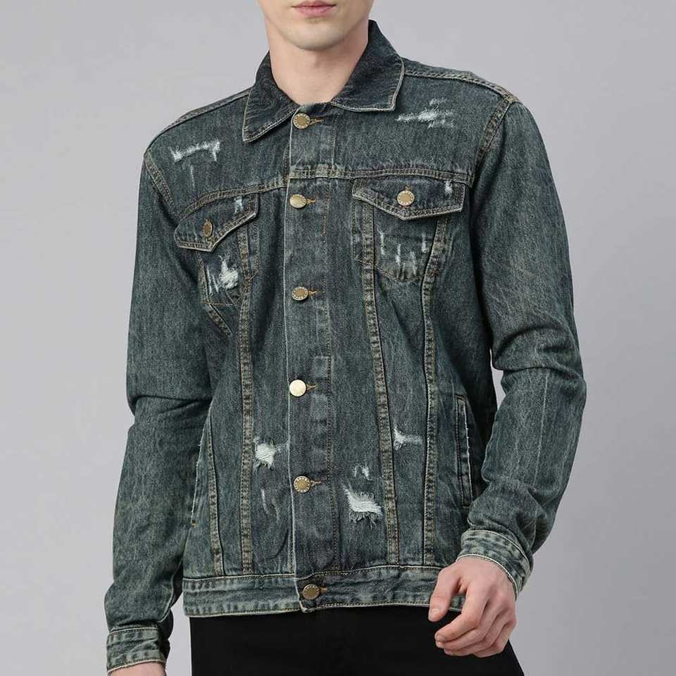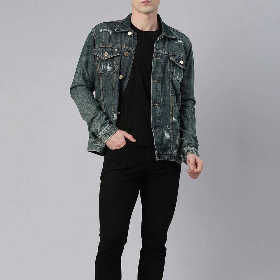 Couleur délavée élégant imprimé Article hommes veste en jean nouveau Look en détresse prix de gros Street Wear hommes veste en jean