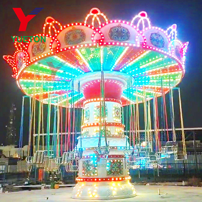 Chaise volante de fête foraine, manège à chaîne tournante, parc d'attractions, sensations fortes, grande balançoire extrême, chaise volante pour enfants et adultes