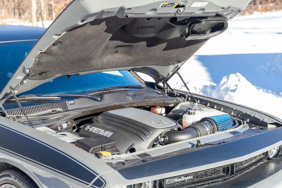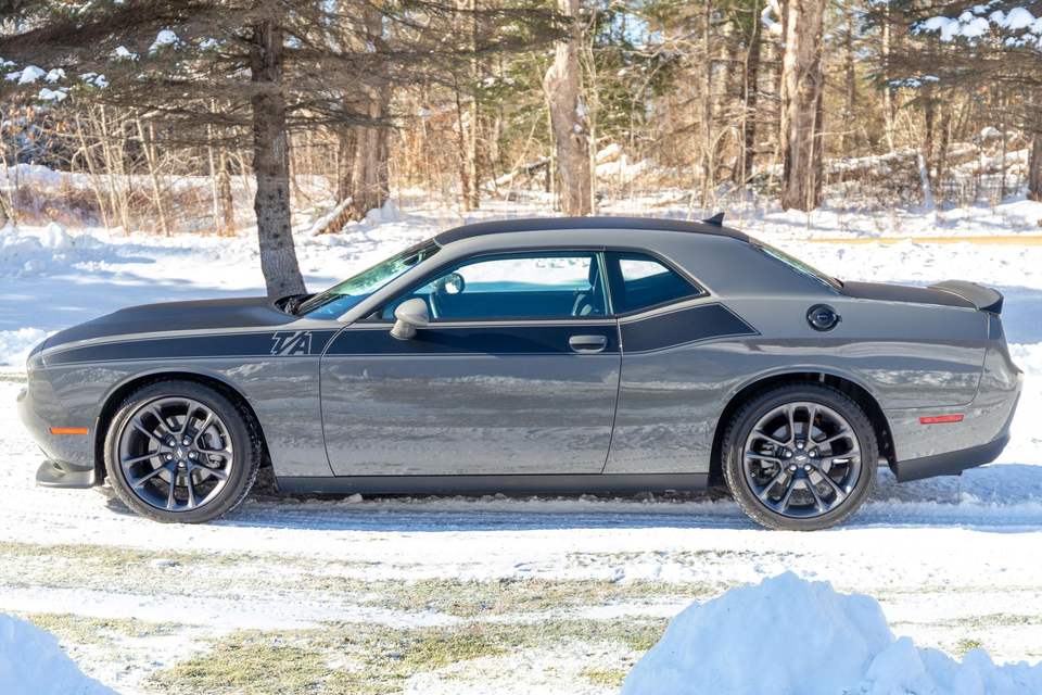 Dodge Challenger T A 2023 d'occasion, 1 700 miles, boîte manuelle 6 vitesses, moteur V8 Hemi, gris Destroyer, non modifié