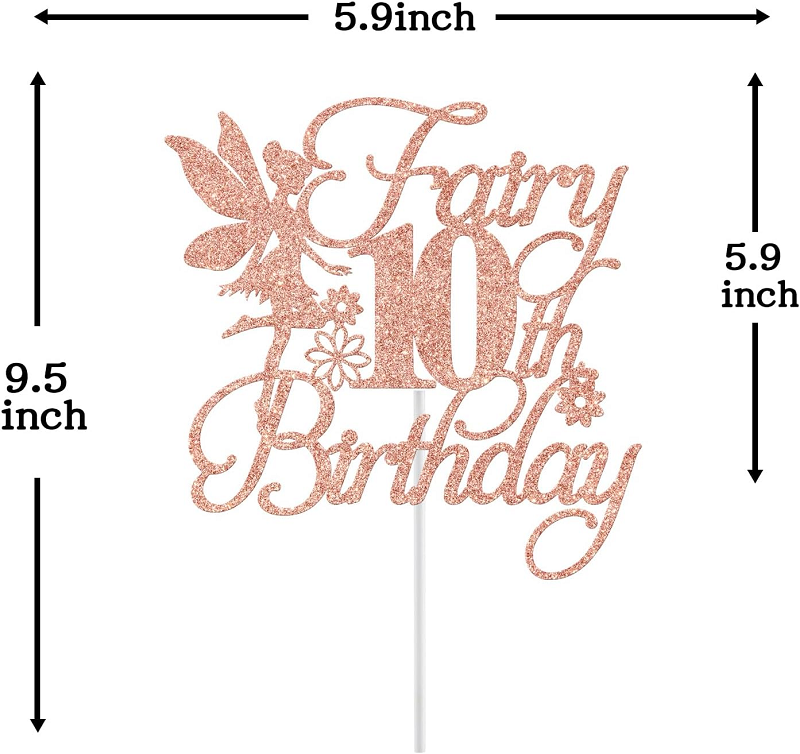 Fée 10e anniversaire gâteau Topper filles dixième anniversaire décorations de fête Floral fée Rose or paillettes anniversaire gâteau décor