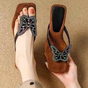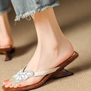 Sandales élégantes à bout carré et strass pour femme, talon bas, forme spéciale, mode estivale
