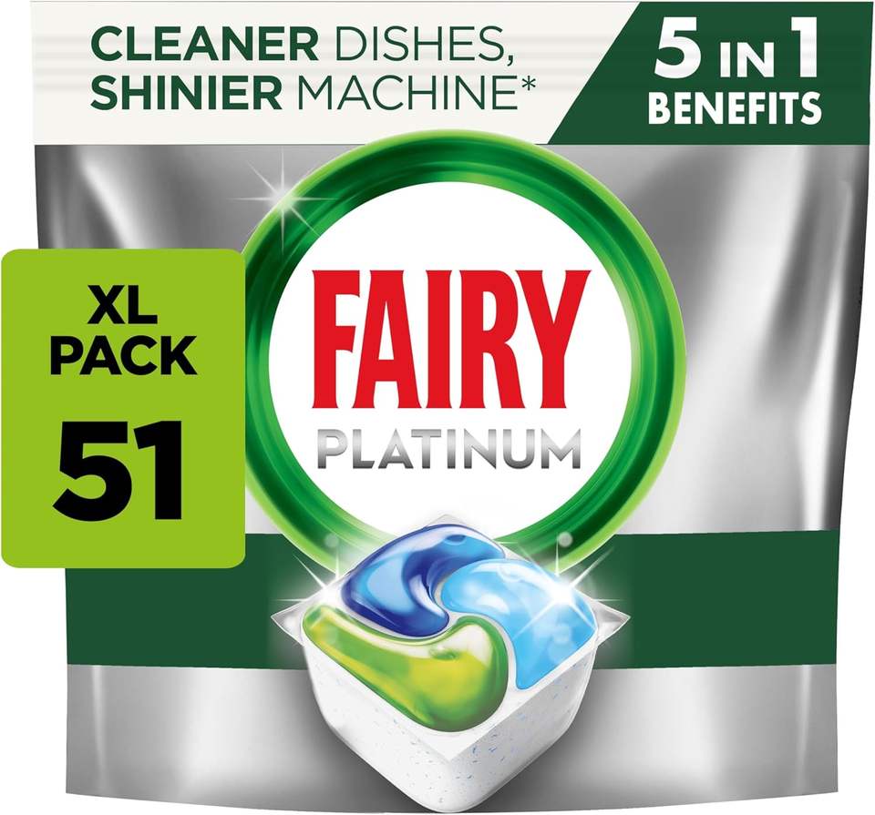 Tablettes lave-vaisselle Fairy Platinum Tout-en-1 - 51 dosettes, Original, Action nettoyante puissante