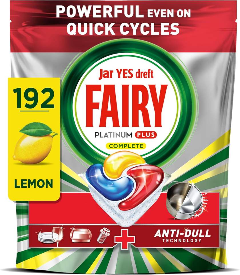 Tablettes lave-vaisselle Fairy Platinum Plus Complete All In One, Agrumes, 192 tablettes, Notre meilleur nettoyage pour une propreté comme neuve, Élimine les taches