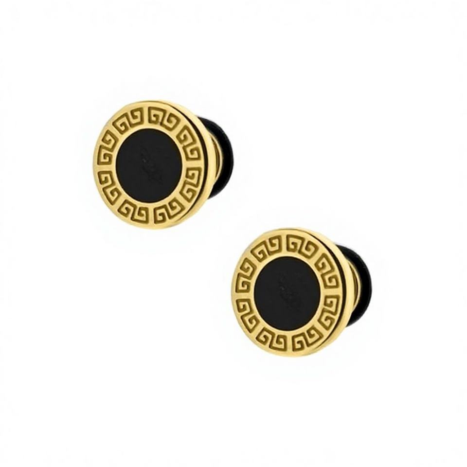 Boucles d'oreilles clous en acier doré motif clé grecque 6mm, lot de 6, accessoire de mode en stock