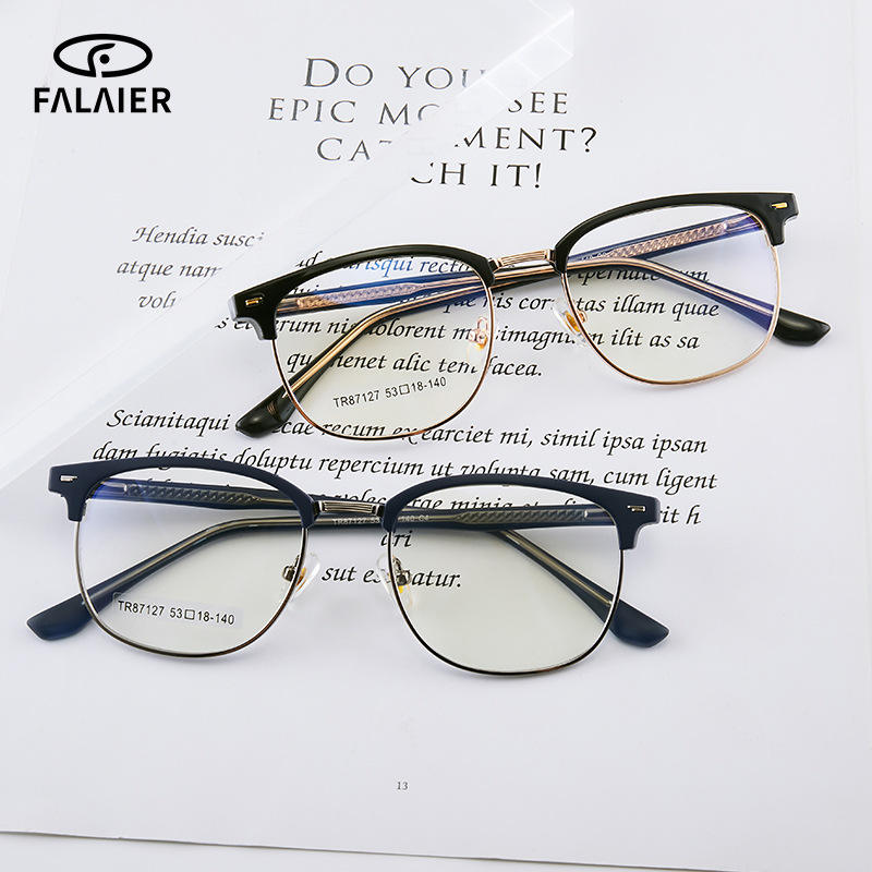 Lunettes Falaier pour hommes, monture intégrale TR90, noir et or, style rétro classique, verres anti-lumière bleue, 53 mm, lunettes optiques professionnelles