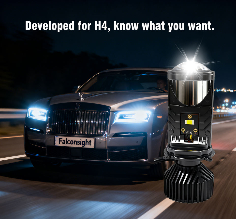 Phare de projecteur LED Falconsight H4 80W Mini projecteur Lentille transparente Lentille claire Lumière de moto automatique Haute qualité Y6