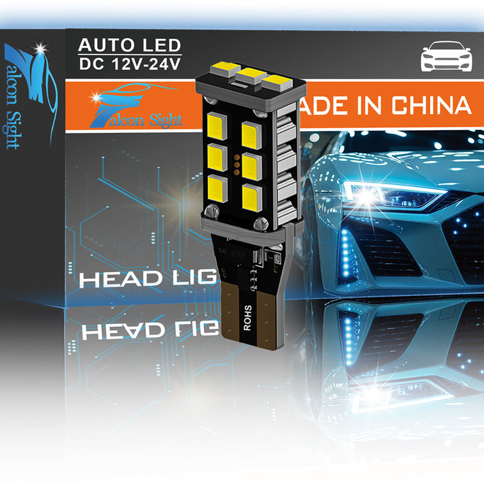 Feux arrière à LED Falconsight T15 Super lumineux Feux de recul W16w Feux de recul de voiture Ampoule de stationnement Rouge Ambre T15 2835 15SMD