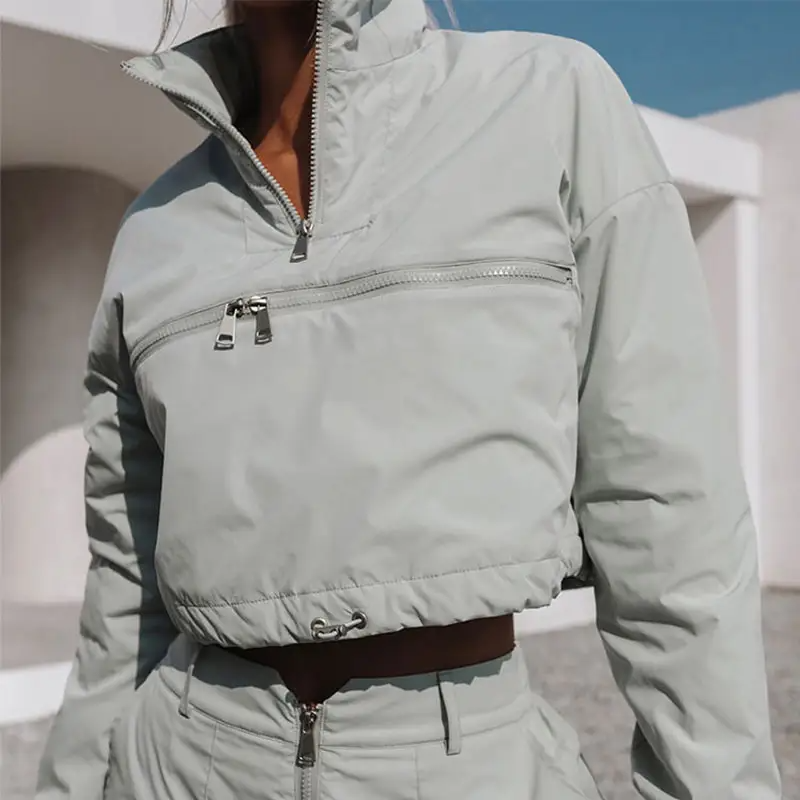 Fall 2024 Women Clothes Half Zip Crop Top Jacket Pants Two Piece Set Jogging Streetwear Women Tracksuit