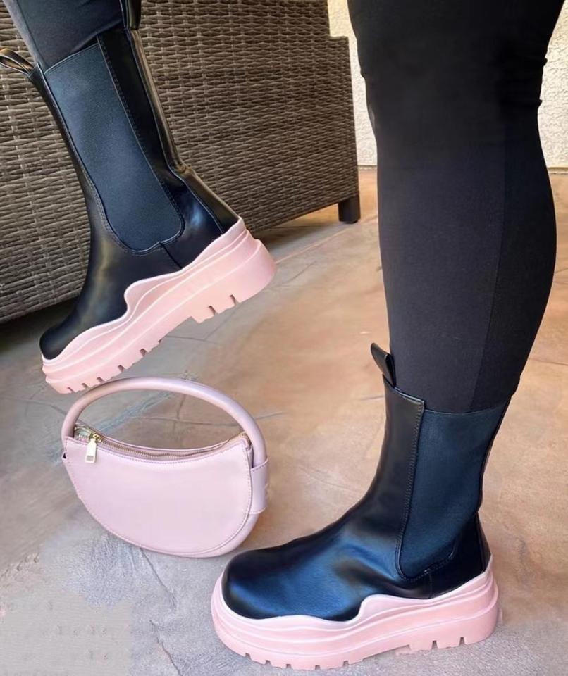 Automne printemps nouvelles femmes bottines en cuir PU femme chaussures de mode Chelsea botte femme plate-forme concepteur sans lacet botte courte