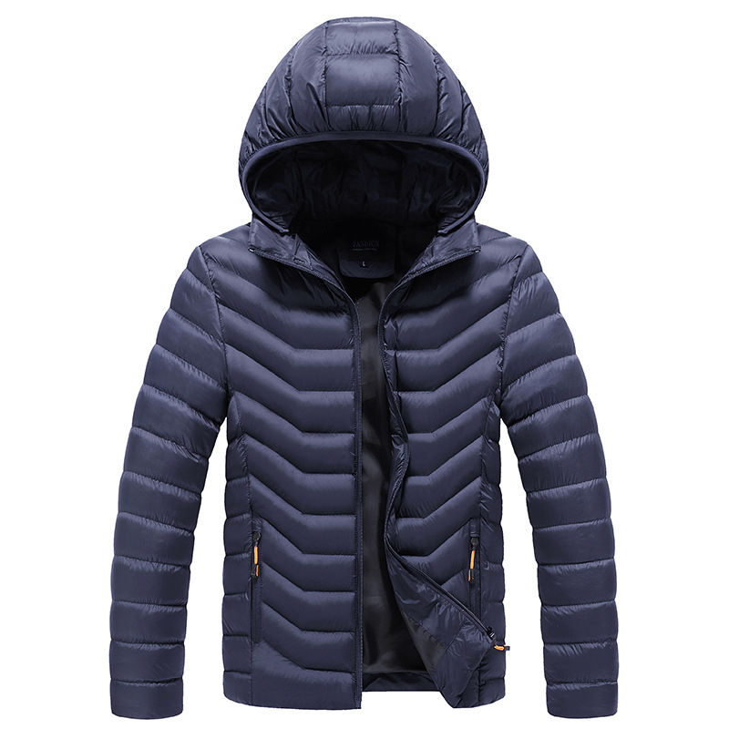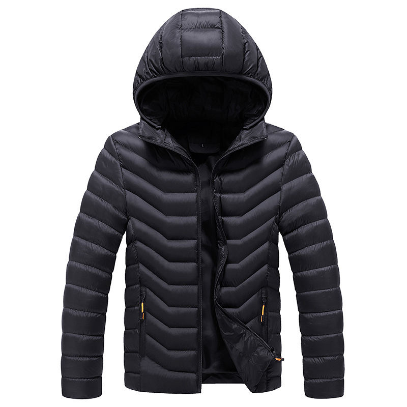 Blouson matelassé épais à capuche pour homme, collection automne-hiver, avec poches, col rabattable, fermeture éclair frontale, durable, style décontracté urbain
