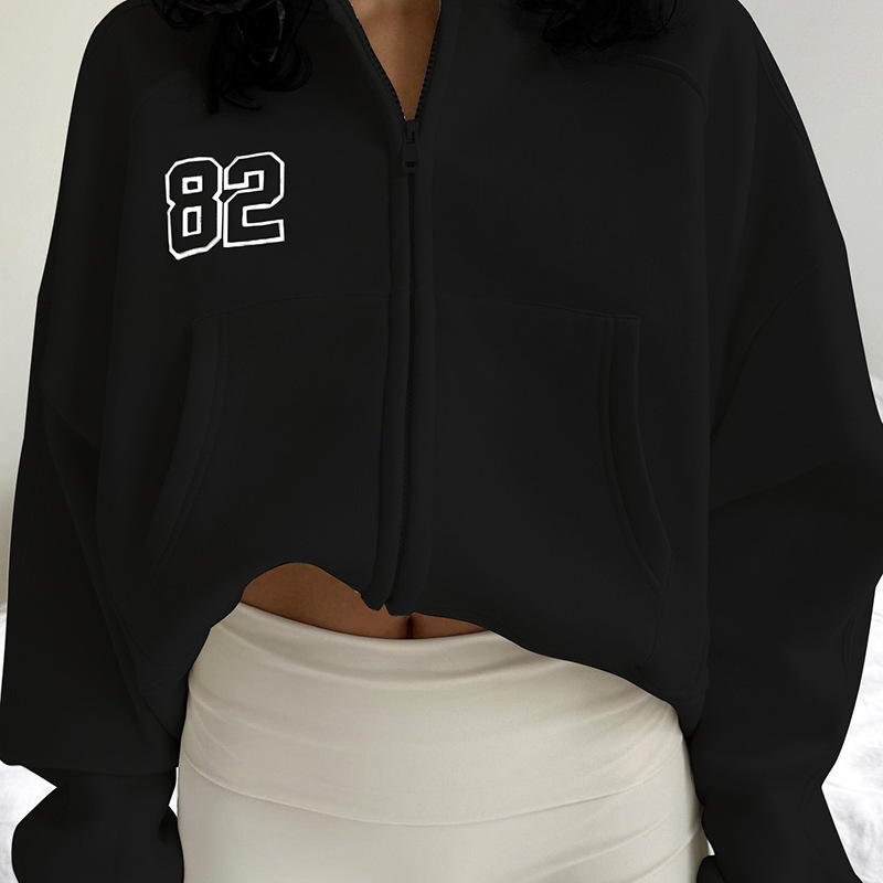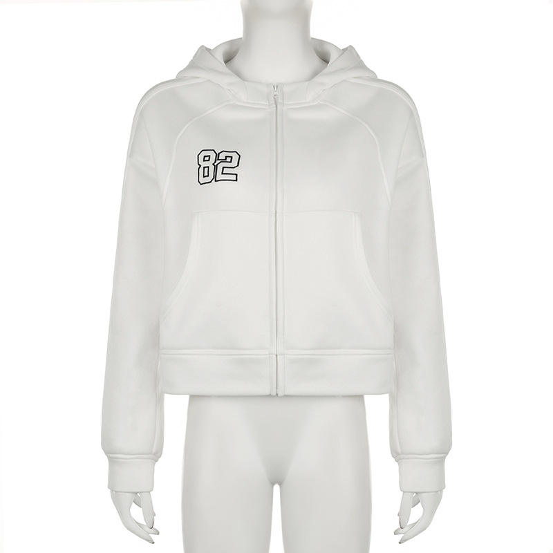 Automne hiver Streetwear brodé dames sweat à capuche femmes poches amples fermeture éclair Cardigan veste manteau hauts sweats à capuche pour femmes