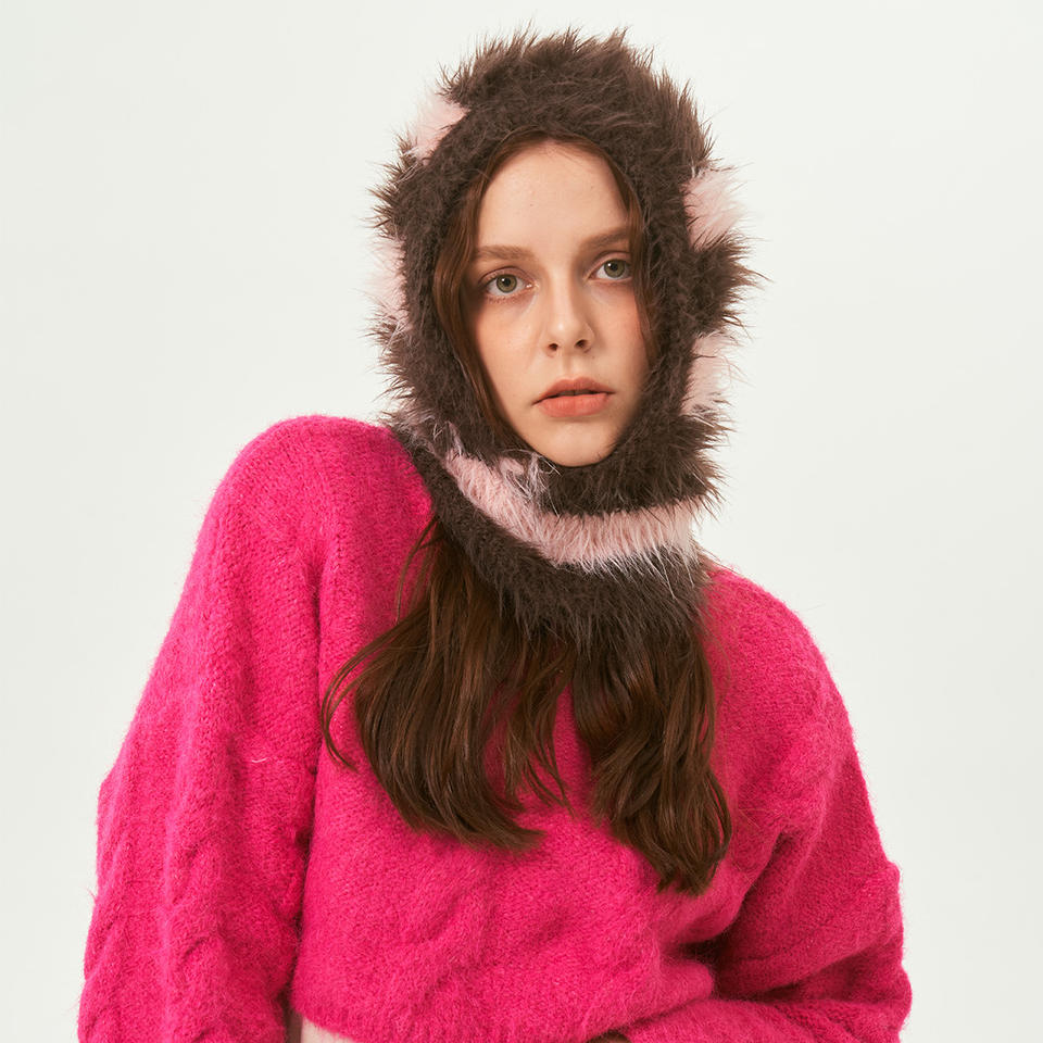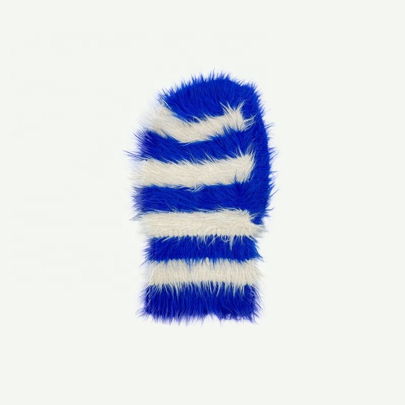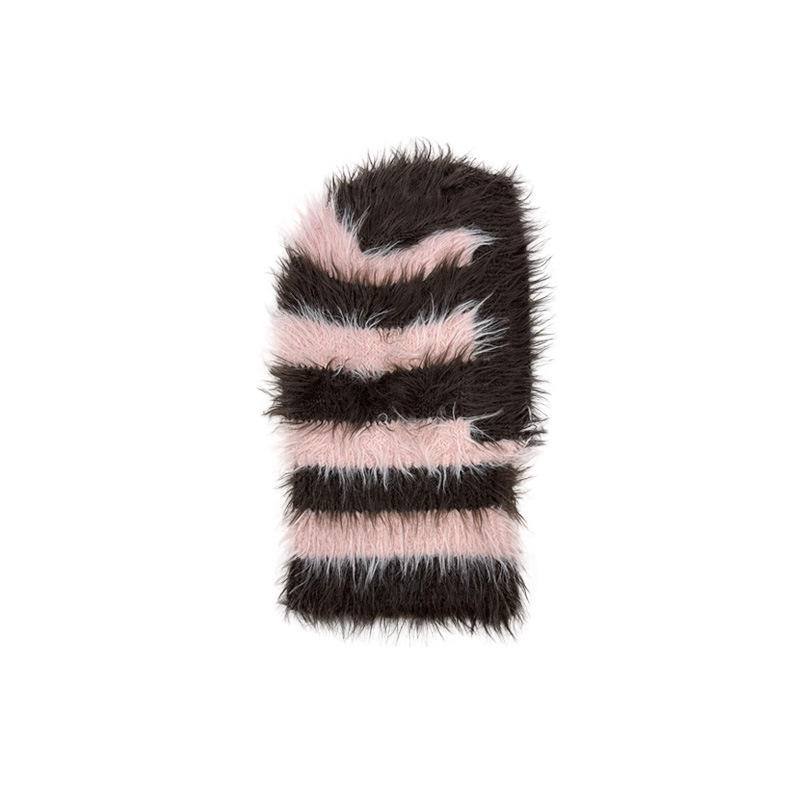 Masque de ski tricoté moelleux en fausse fourrure de vison multicolore à rayures automne hiver