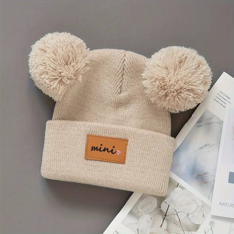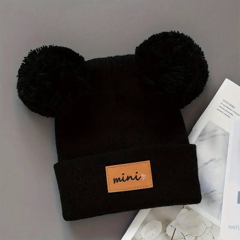 Chapeau en tricot tendance automne-hiver avec étiquette en cuir pour garçons et filles, style décontracté facile à assortir