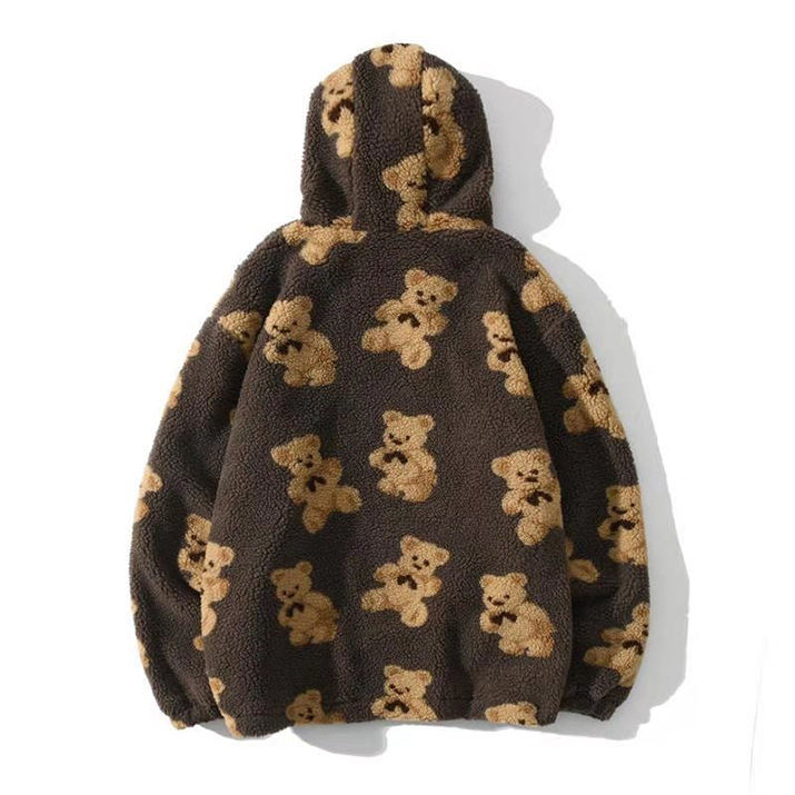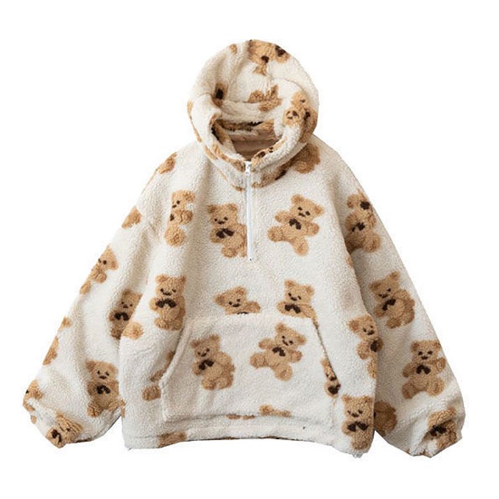 Pull chaud d'automne-hiver, sweat à capuche en sherpa imprimé ours élégant pour femmes, logo personnalisé de haute qualité, streetwear tendance, demi-zip