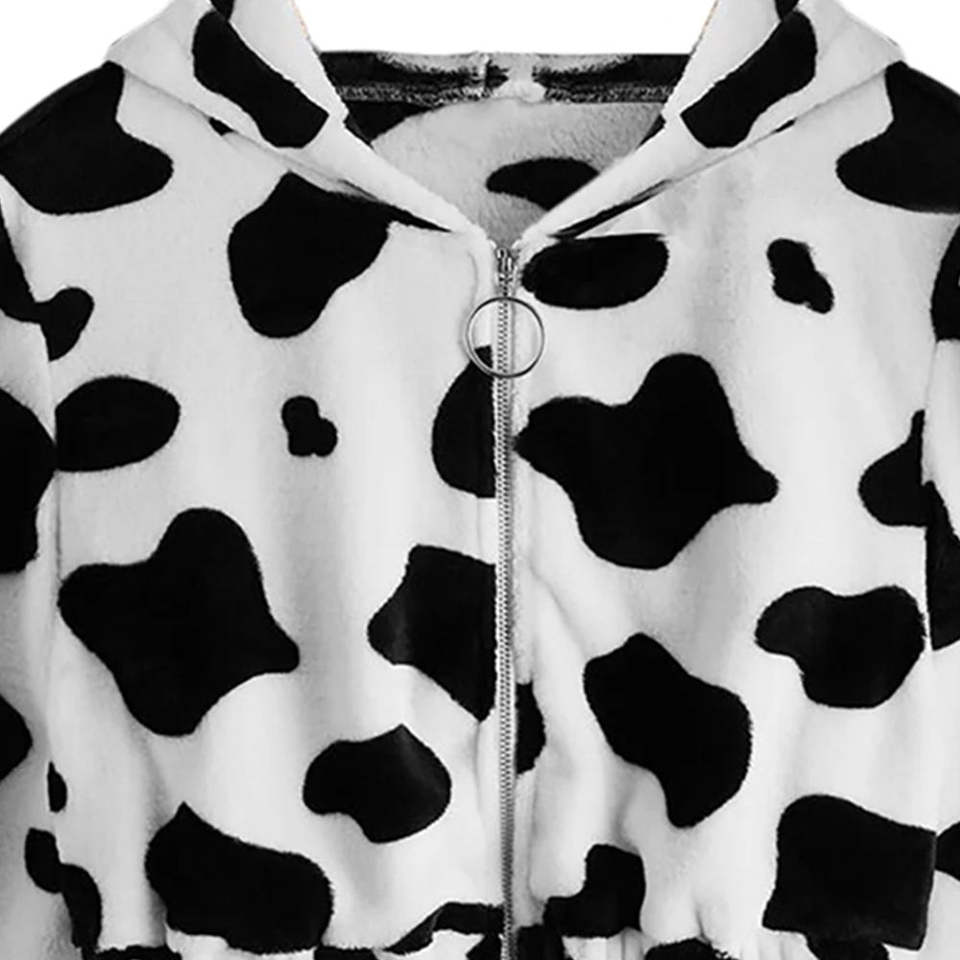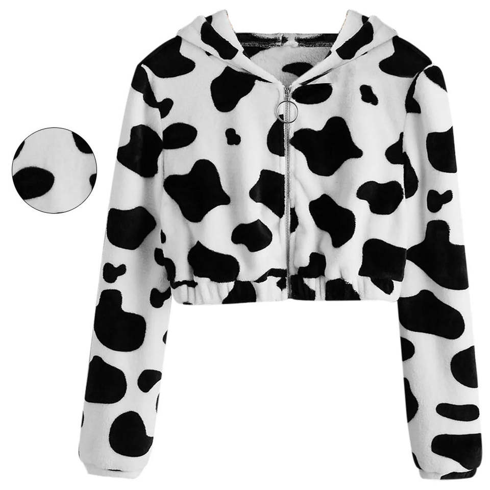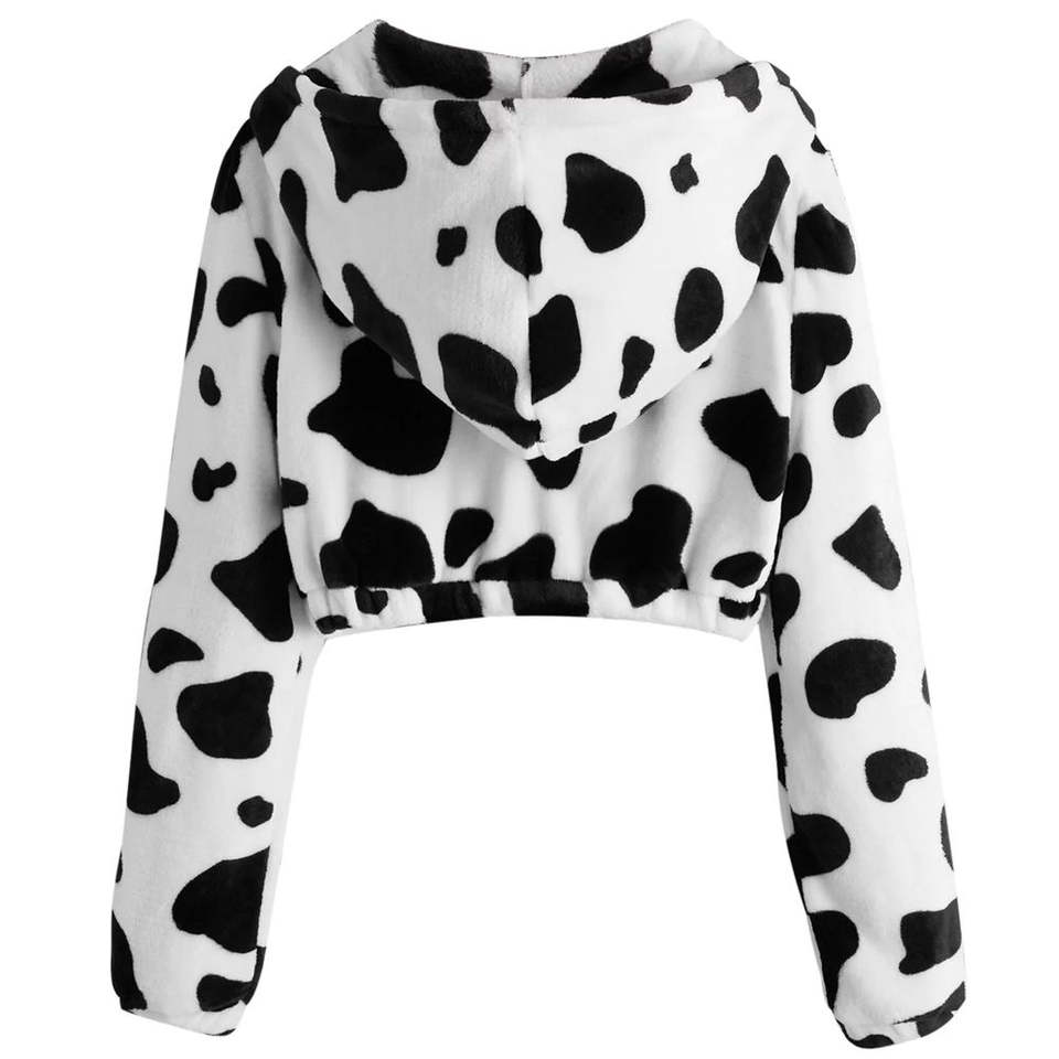 Fall Winter Women Long Sleeve Crop Hoodie Sweatshirt Tops Cow Printed Hooded Pullover Hoodie Crop Tops OEM Wholesale