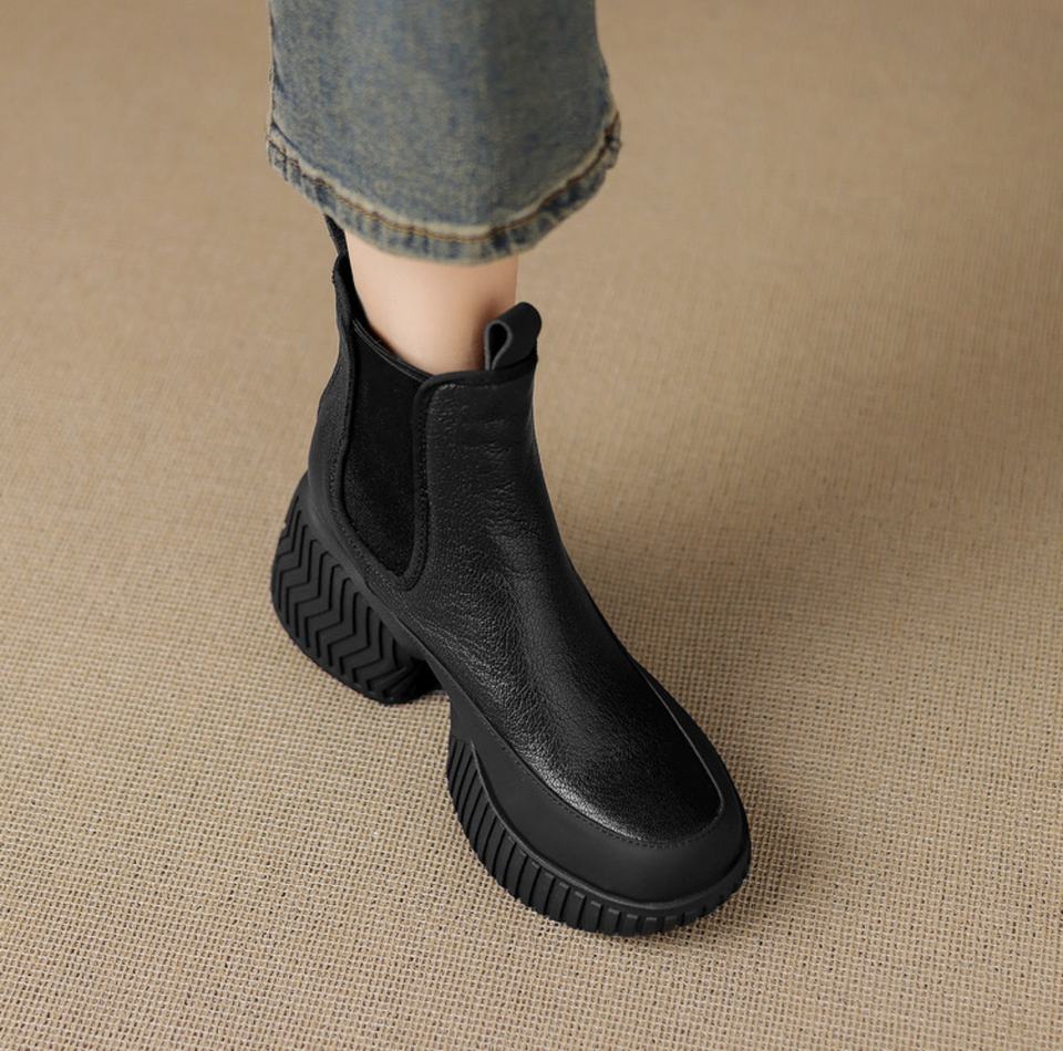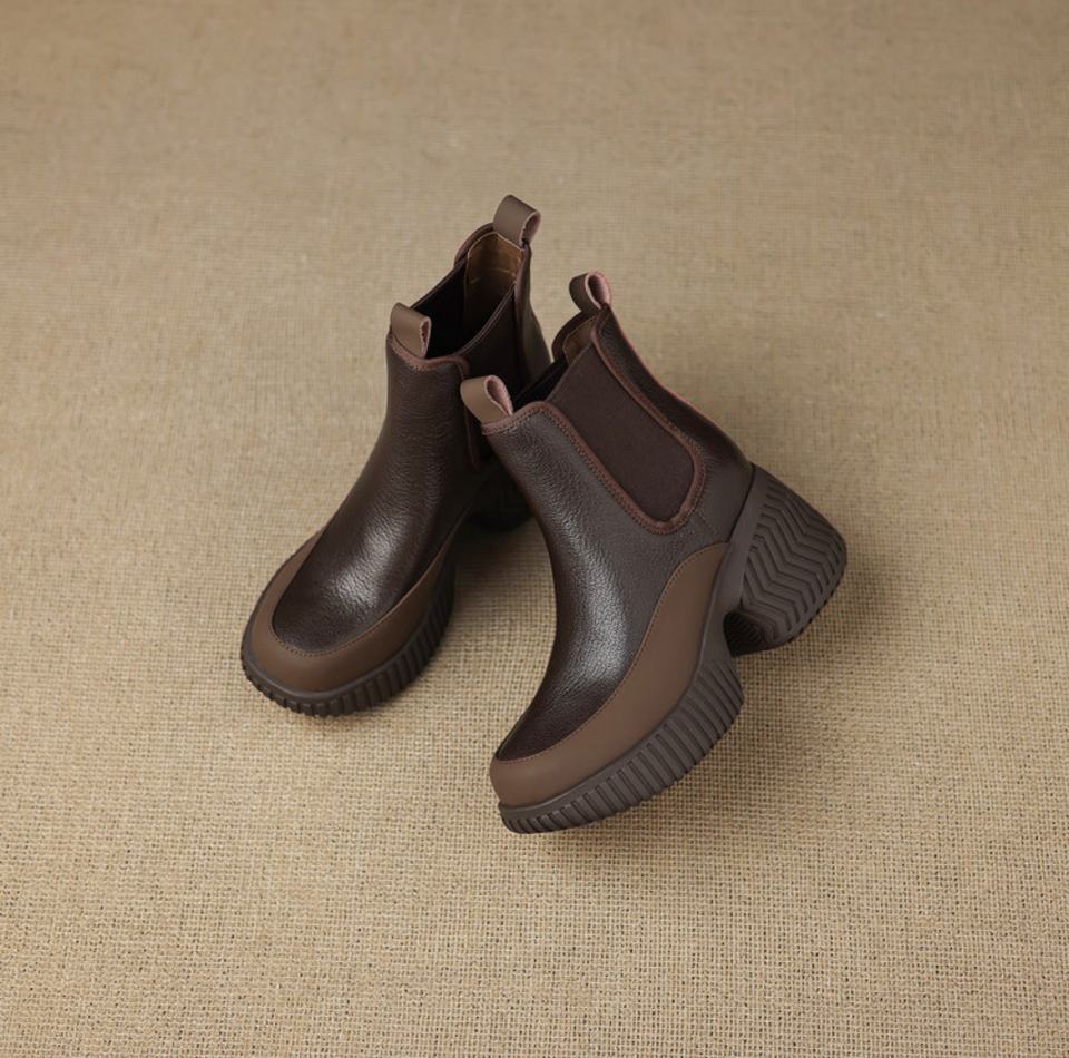 Bottines courtes en cuir à lacets et talons hauts, à semelle souple, style rétro décontracté, matures et à la mode, polyvalentes