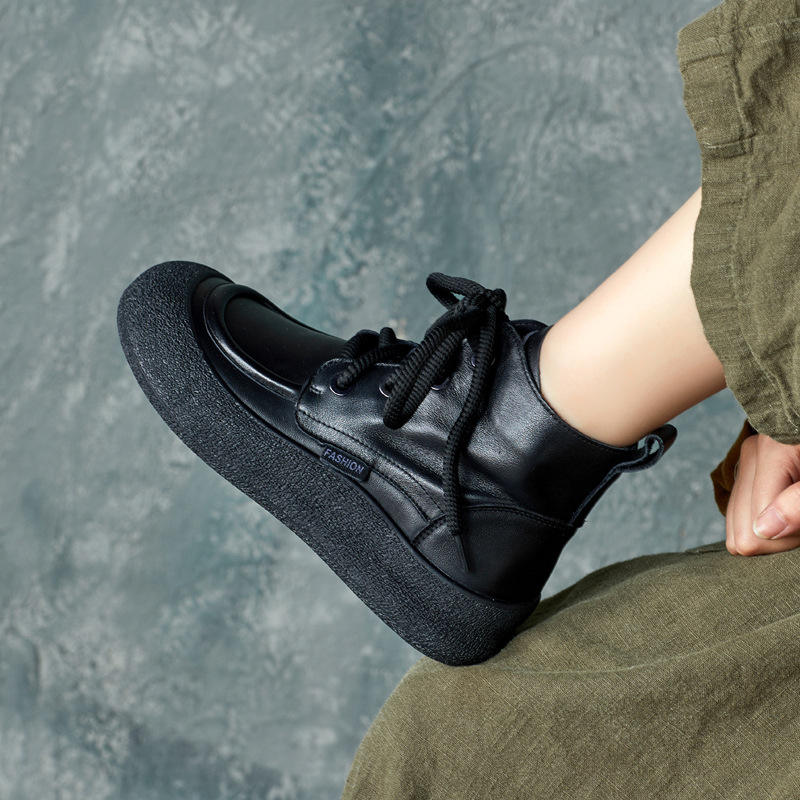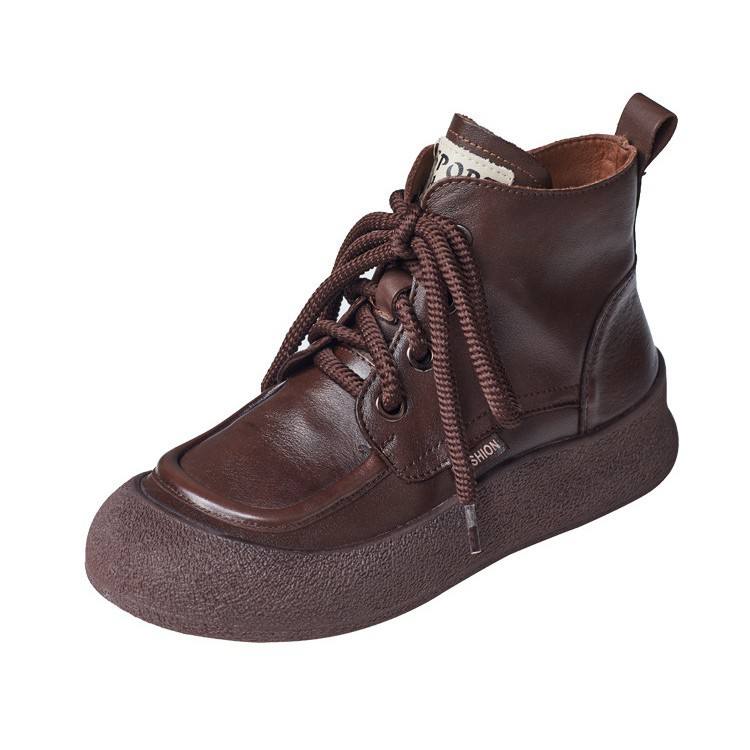 Nouvelles bottes Martin à plateforme pour femme, style britannique, faites à la main, en cuir de vachette, à bout rond, à lacets croisés, montantes, collection automne-hiver