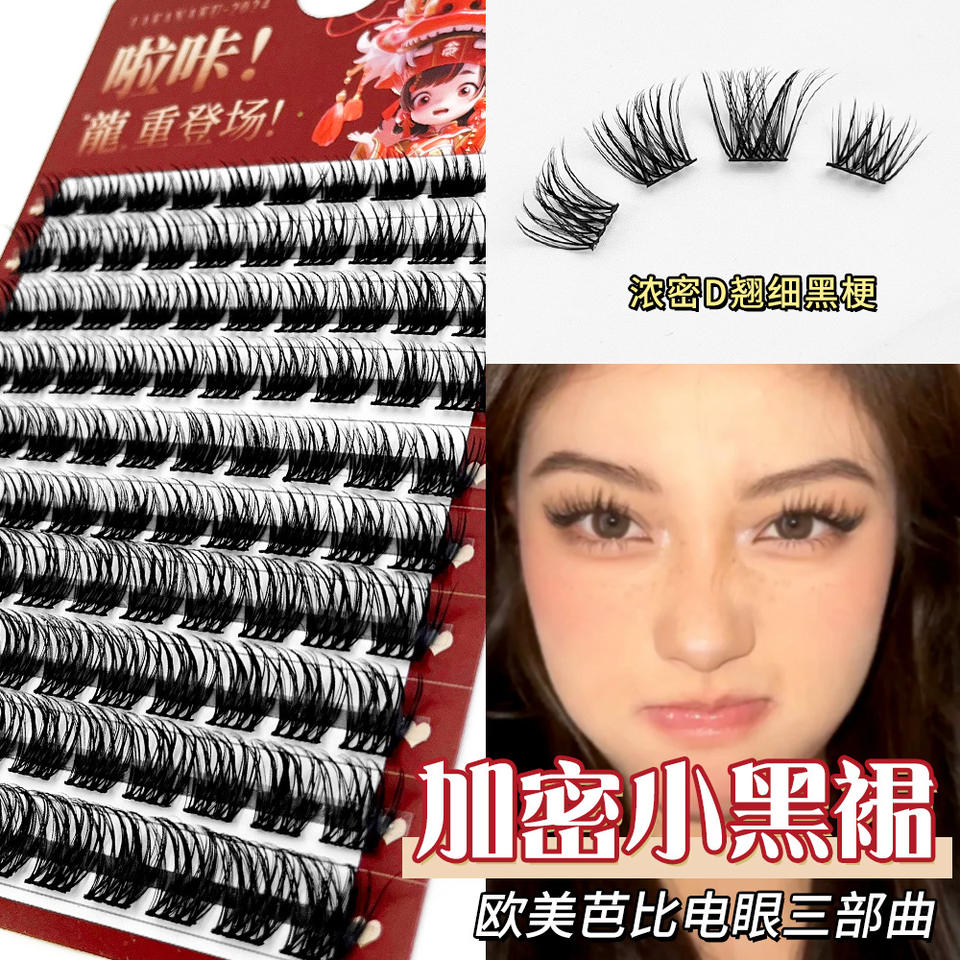 Faux cils 10 rangées style croisé épais et recourbés effet 3D fabriqués à la machine fibres importées bouquets individuels pour les Européennes et Américaines