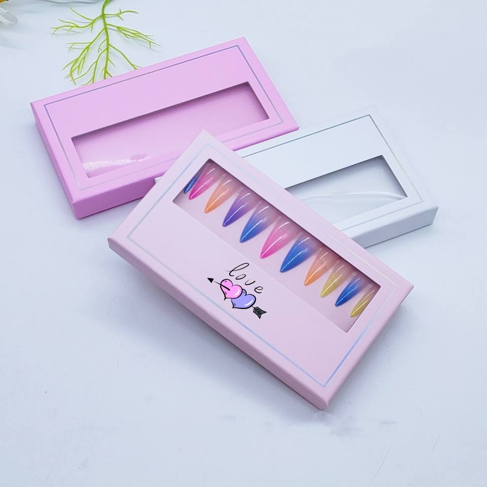 Boîte d'emballage pour faux ongles, boîte en papier pour ongles pressés avec fenêtre transparente, boîte d'emballage de marque pour ongles pressés