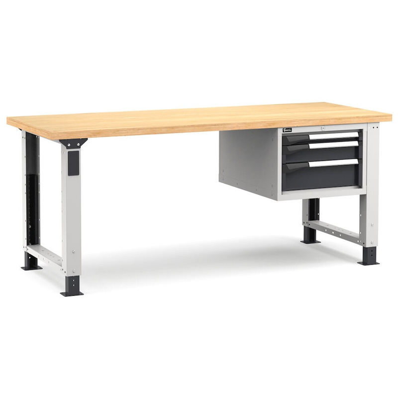 Établi réglable Fami Master 200cm en gris avec plateau en bois et 3 tiroirs