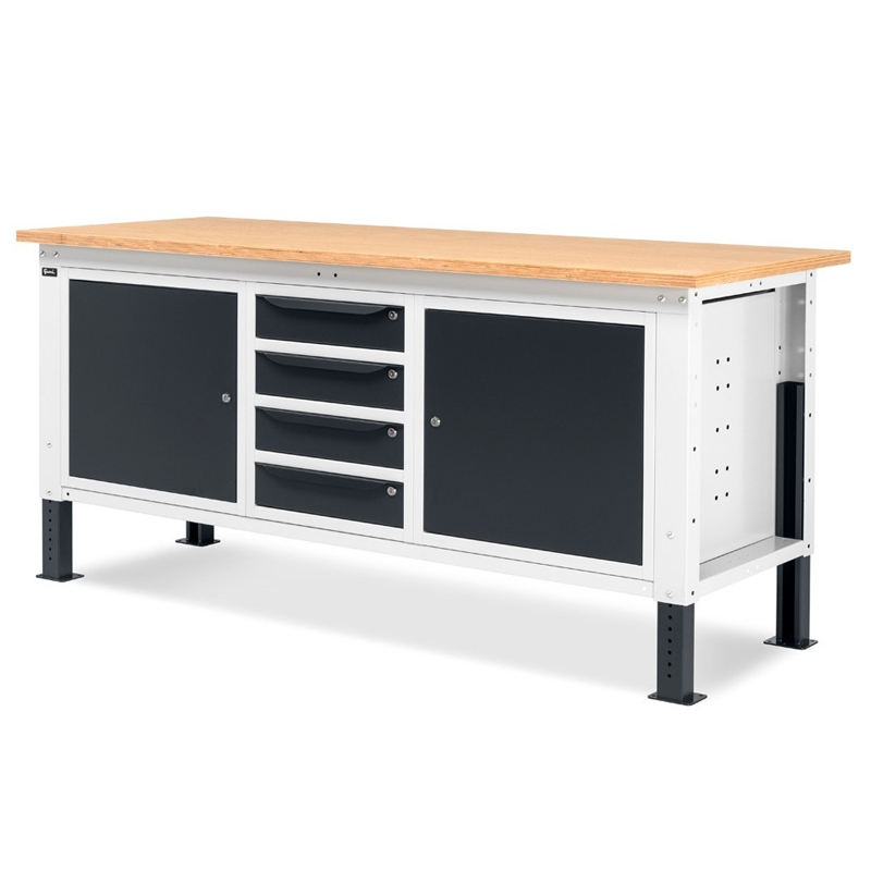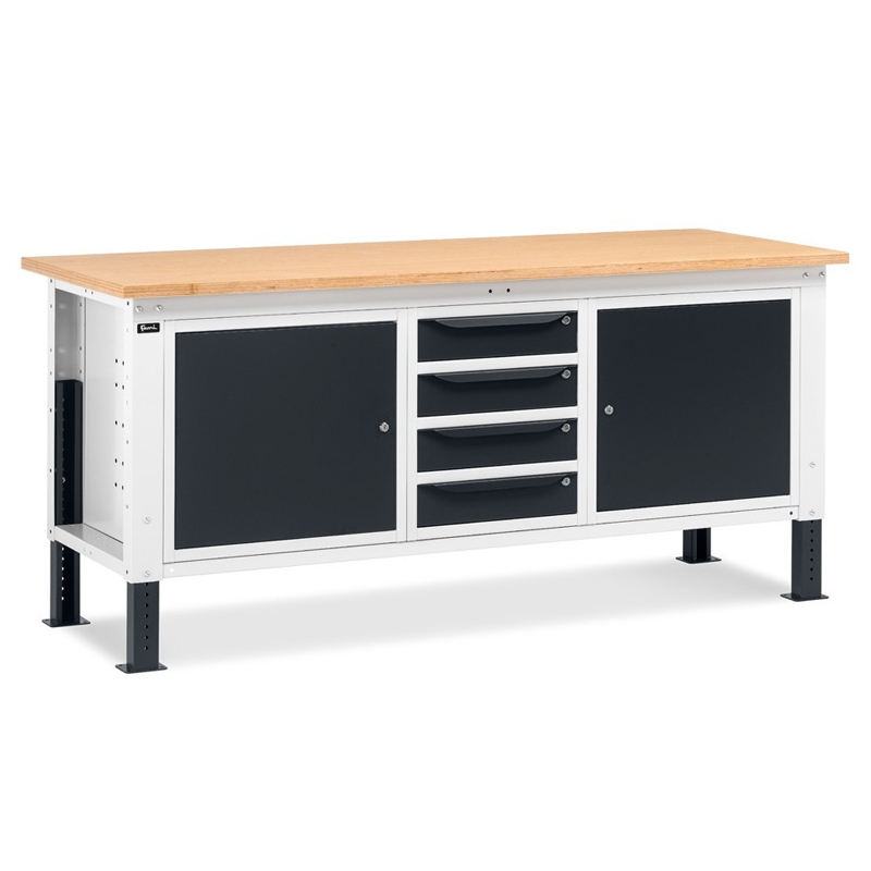 Établi réglable Fami WORK2009, plateau en bois de 200cm, 2 armoires et 4 tiroirs