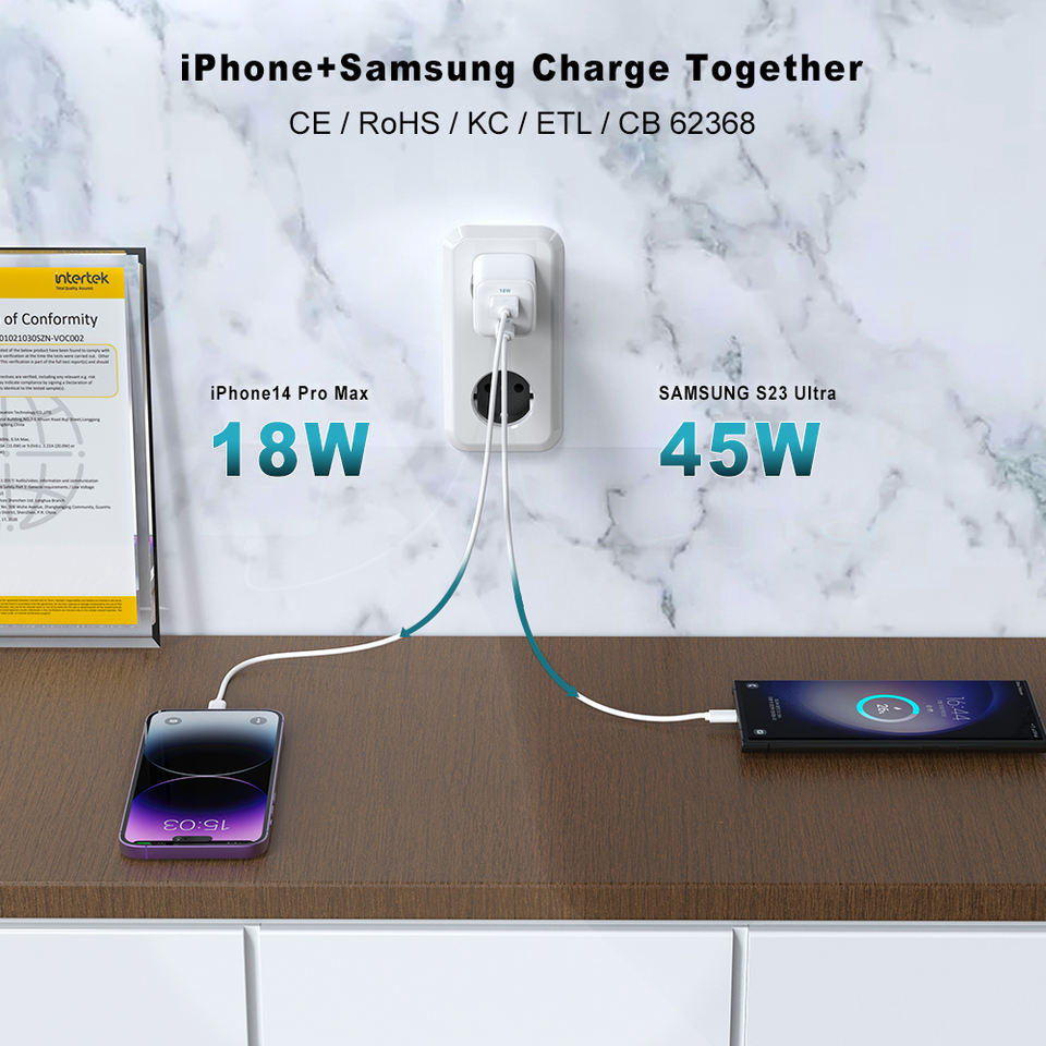 Famille Design 35W 45W téléphone portable GAN chargeur adaptateur chargeur rapide Type C Portable USBC mur PD chargeur 45w pour Apple iPhone 16
