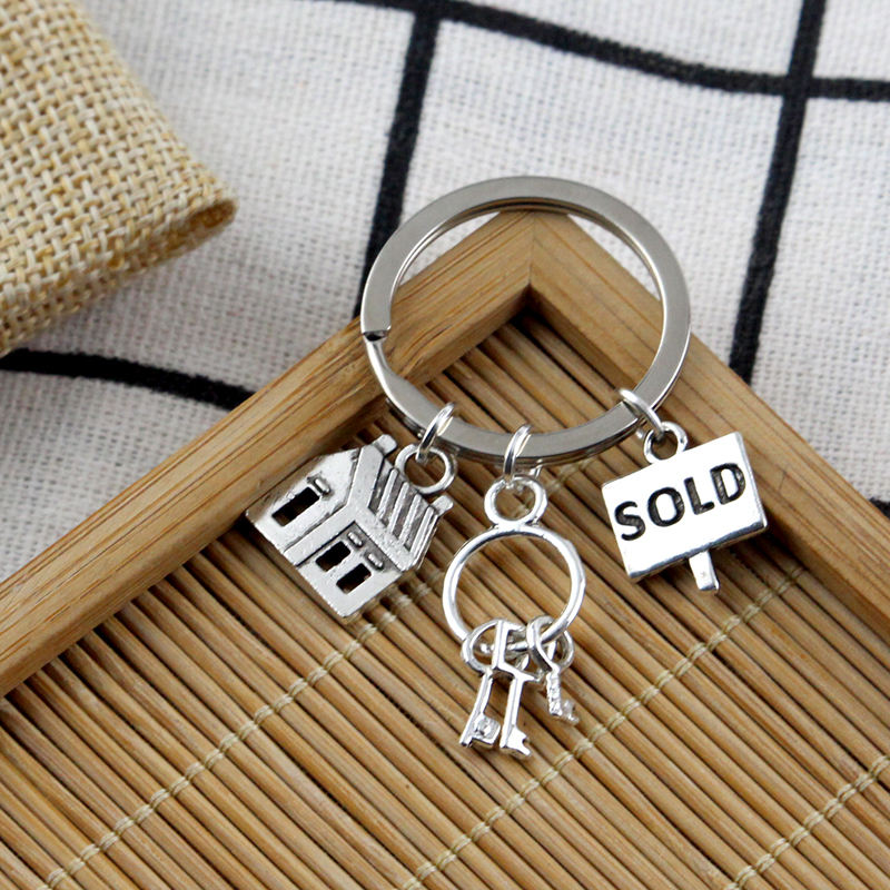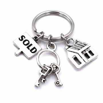 Famille Agent immobilier clés porte-clés Antique argent maison clés vendus breloques agent immobilier voiture sac porte-clés