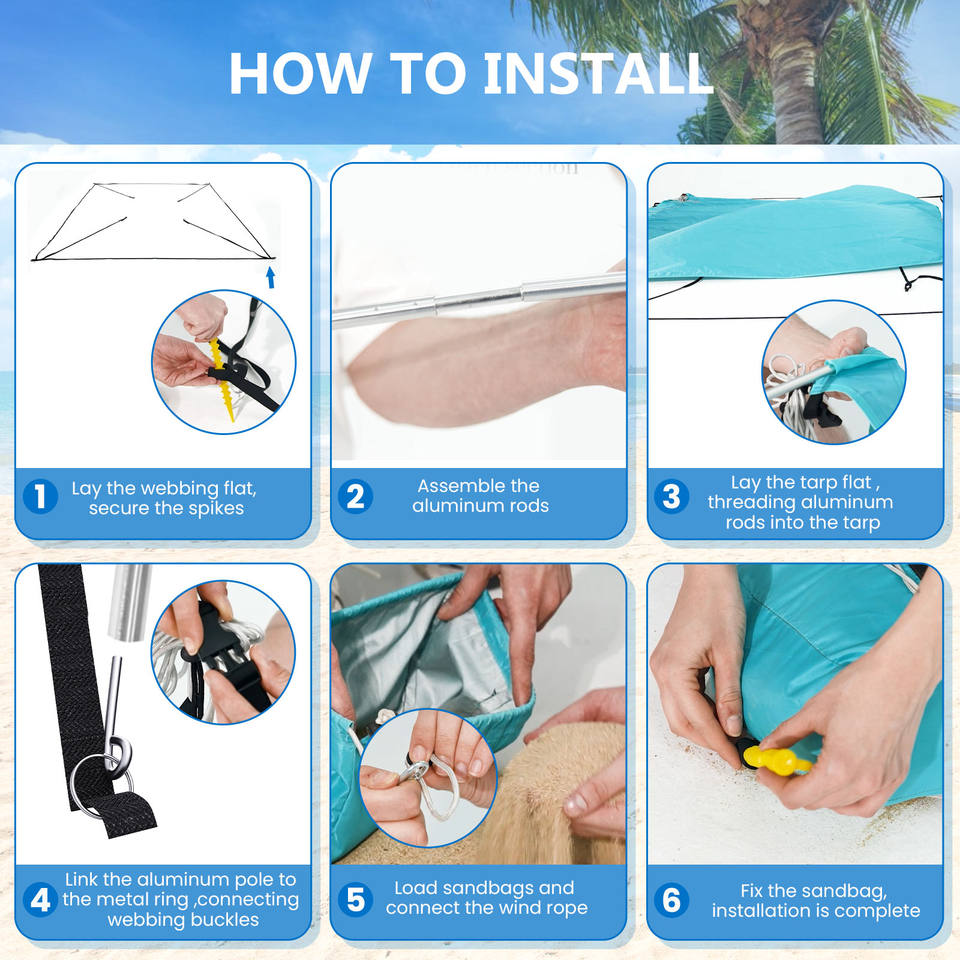 Family Shade Tent Corrosion Resistant Aluminum Frame Reinforced Sand Bags for Coastal Use 98% UV Block
