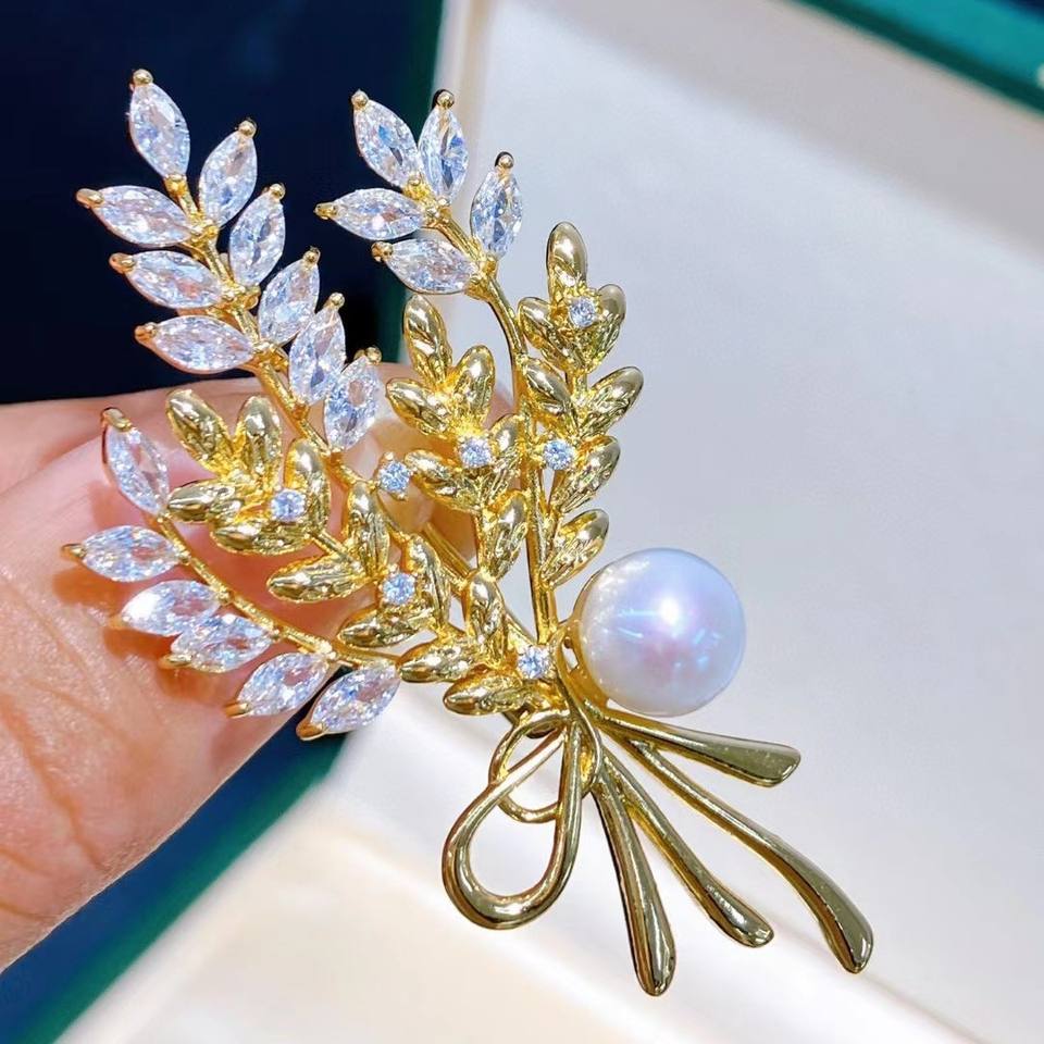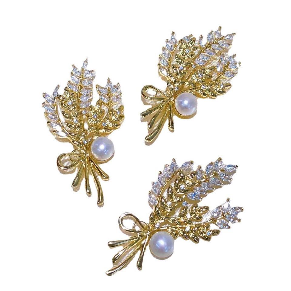 Famous Brand Zhuji 14k Gold Breast Flower Brooch Akoya Pearl with Wheat Ear Color Preserving Jewelry