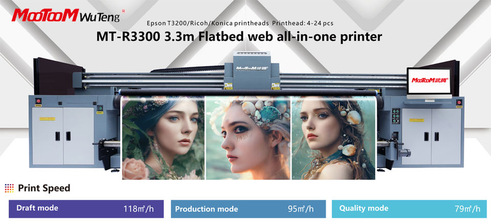 Imprimante à jet d'encre automatique à grande vitesse Mootoom modèle R3300 3,3 m quatre/six couleurs avec encre haute visibilité pour plaques en cuir/verre/PVC, aérographe
