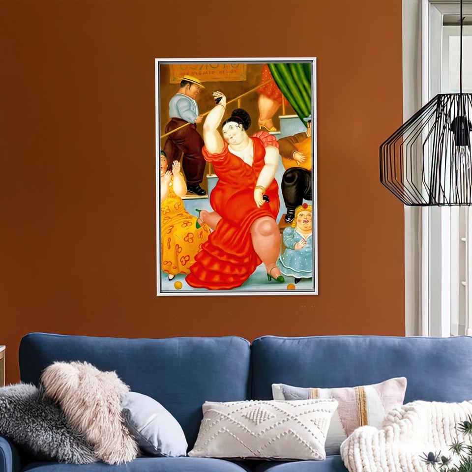 Toile imprimée célèbre : Œuvre d'art « Femme dansante» de Fernando Botero, encadrée en blanc