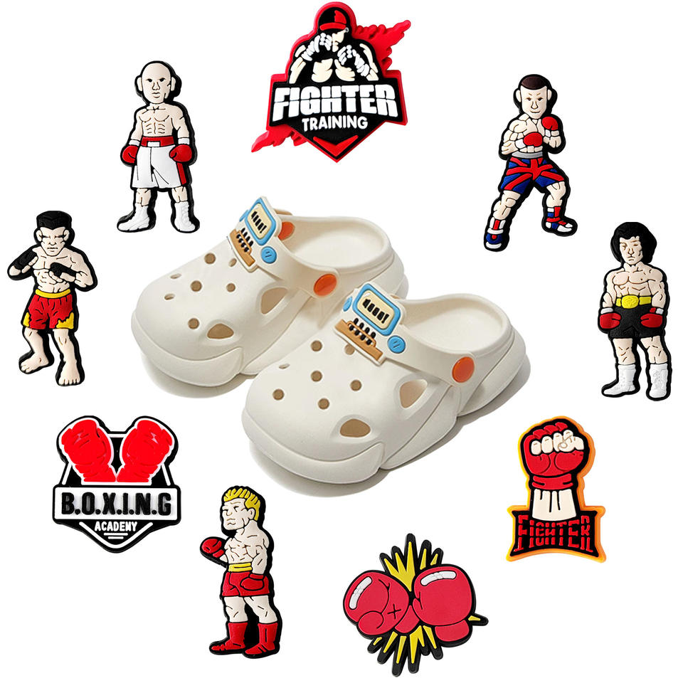 Breloques de chaussures de boxe en PVC, populaires et tendance, pour l'entraînement et le sport, avec motifs de combattants et d'académies de boxe