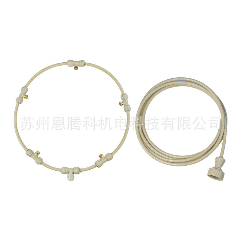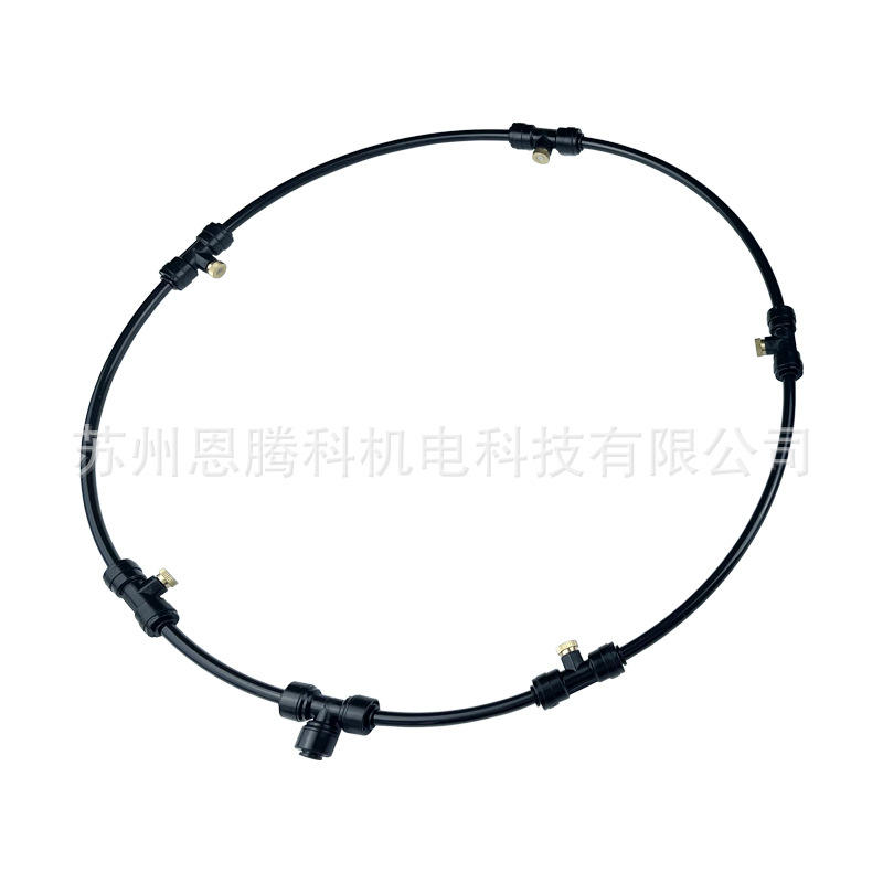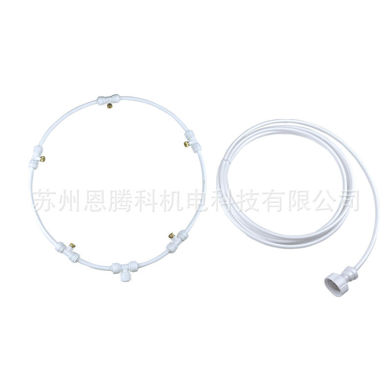 Buse de pulvérisation annulaire pour ventilateur 10m 5 têtes avec robinet à bille et connecteur plastique pour refroidissement et humidification, installation au plafond
