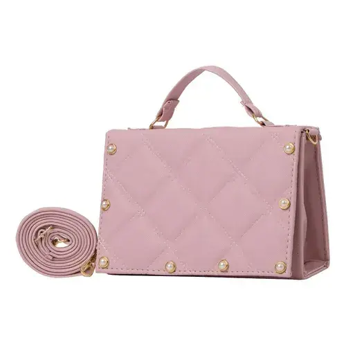 Fana Gisela Rosa Crossbody Bag PU Leather Single Strap Zipper Waterproof Chain Decor Daily Use Women's Shoulder Bag