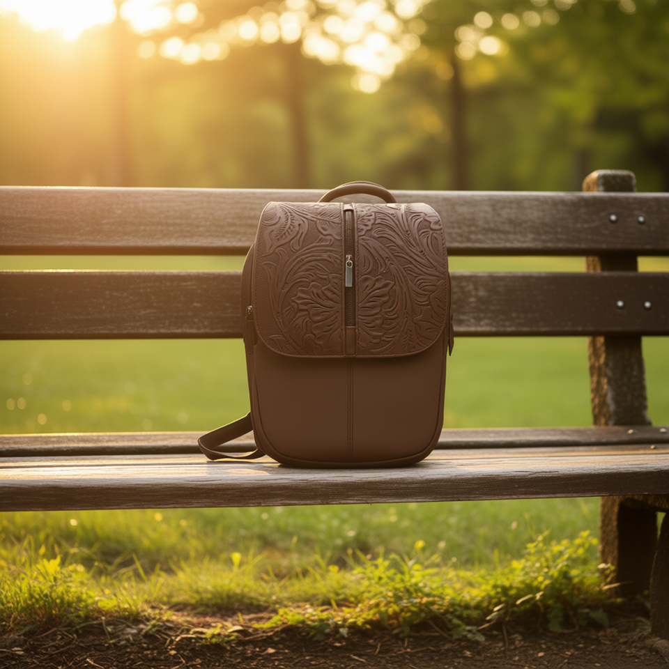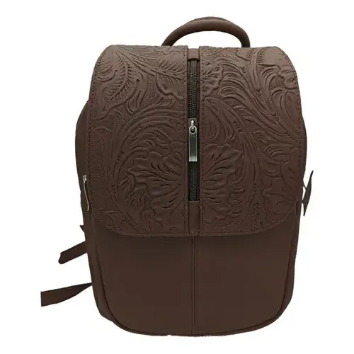 Sac à dos en cuir de vachette Fana Letizia Chocolate 5L, motif floral ciselé, sac de voyage unisexe, style adulte