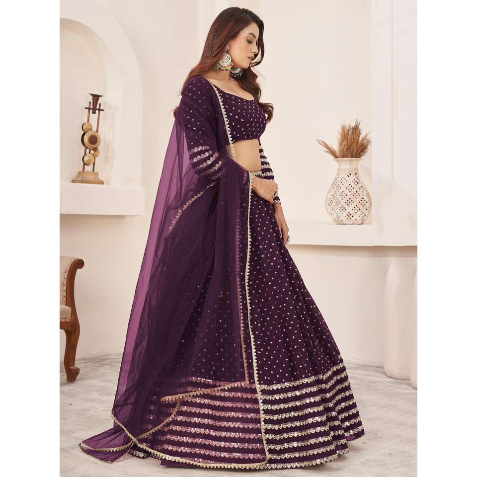 Paillettes violettes fantaisistes Georgette Réception Porter Lehenga Choli