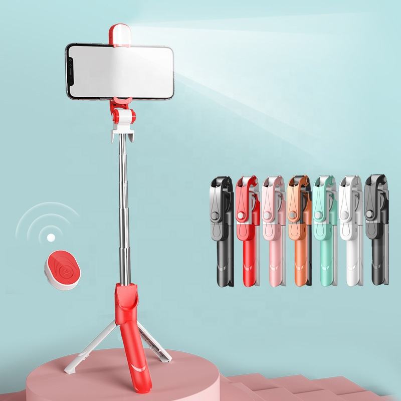 Fantaisie 3-en-1 Bâton De Selfie Intégré Coloré Smartphone Perche avec Lumière LED Trépied En Acier Inoxydable Baton De Selfie Con Luz