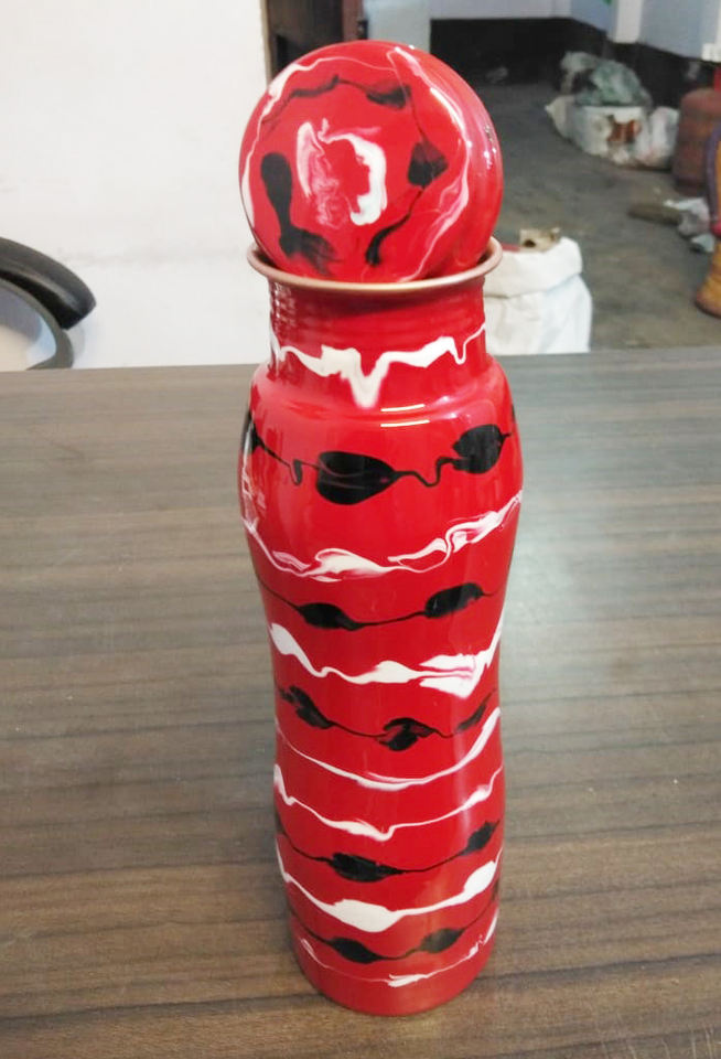 Fancy 99.98% Pure Copper Printed Water Bottle Copper Water Bottle Ayurveda 950ml Premium Quality Luxury Look Copper Water Bottle