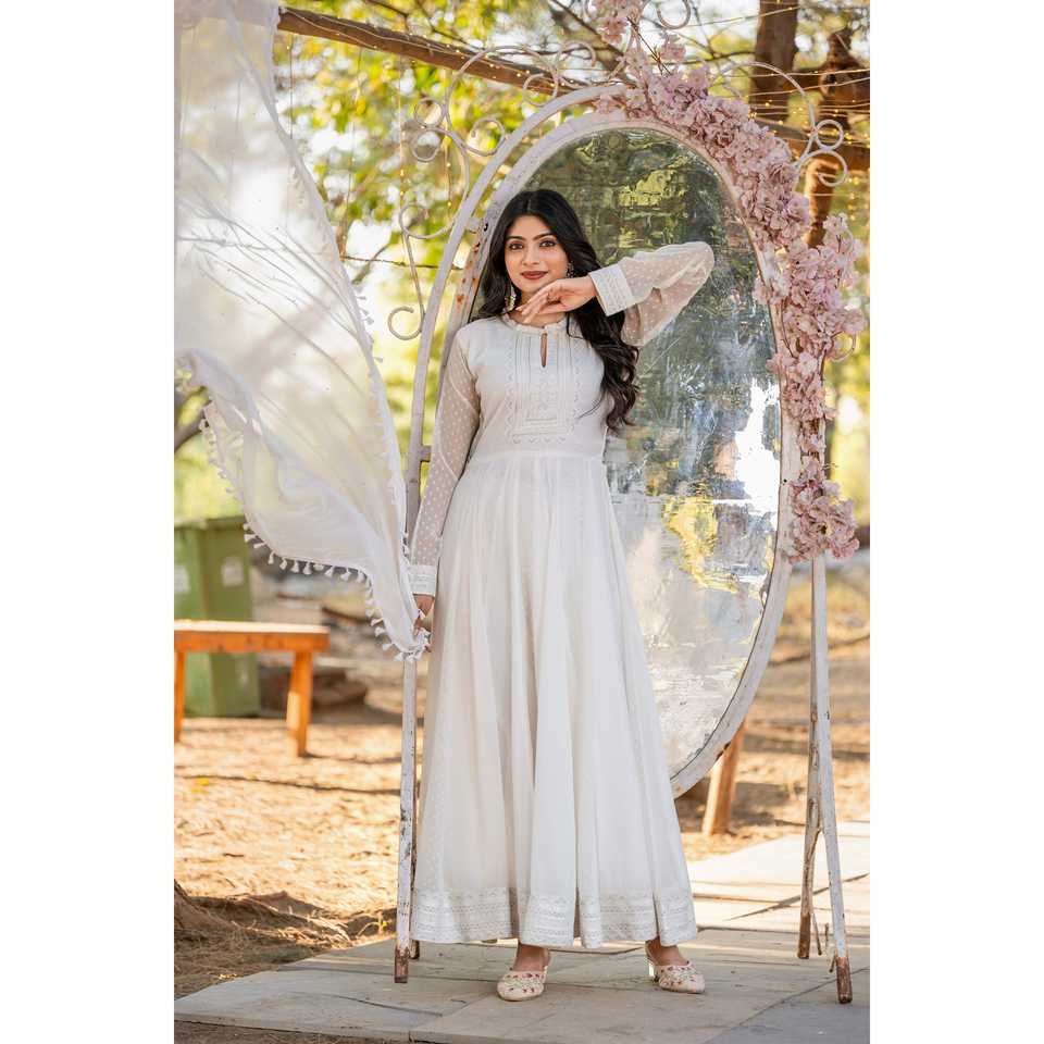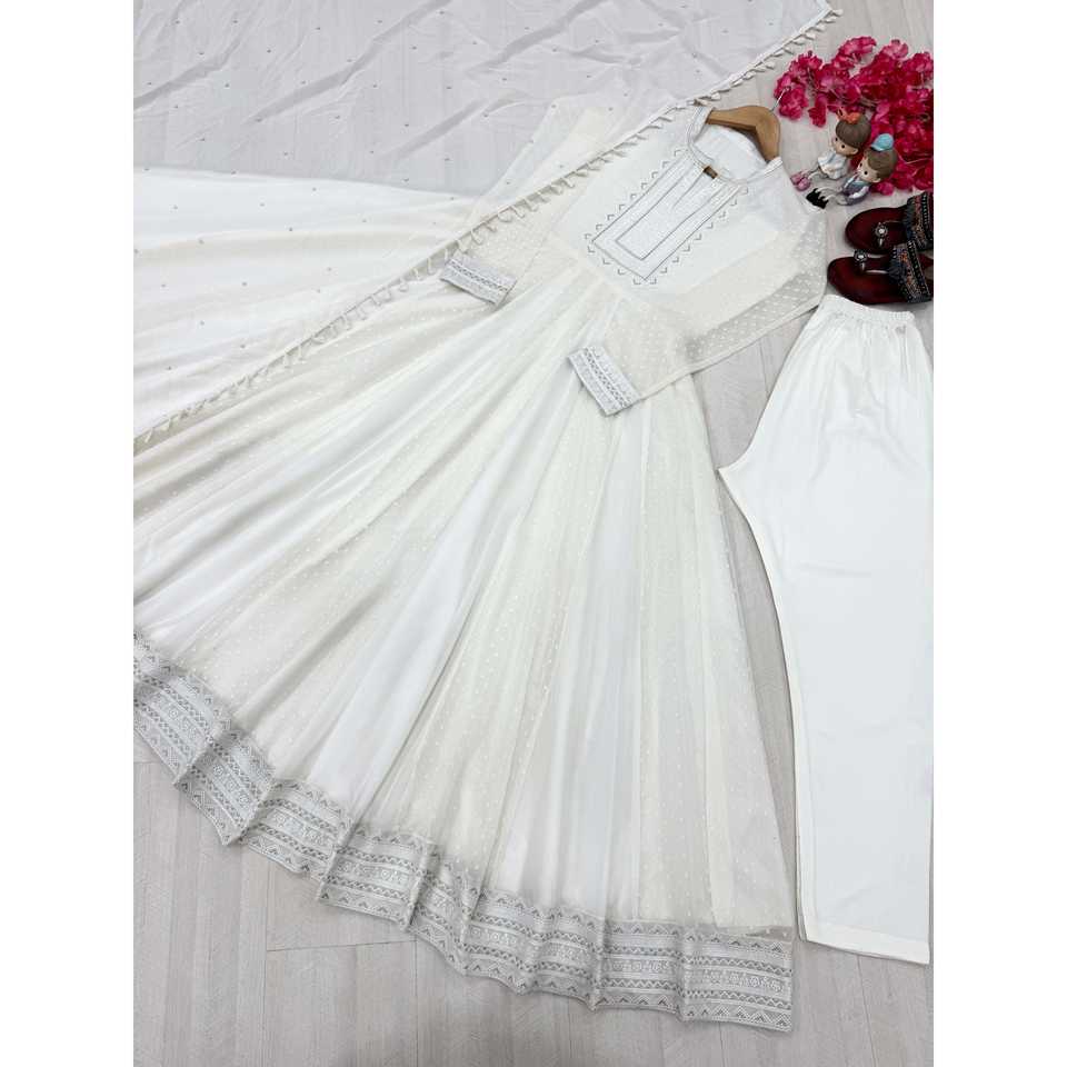 Ensemble robe Anarkali élégante avec dupatta et pantalon en mousseline de soie pour les occasions festives