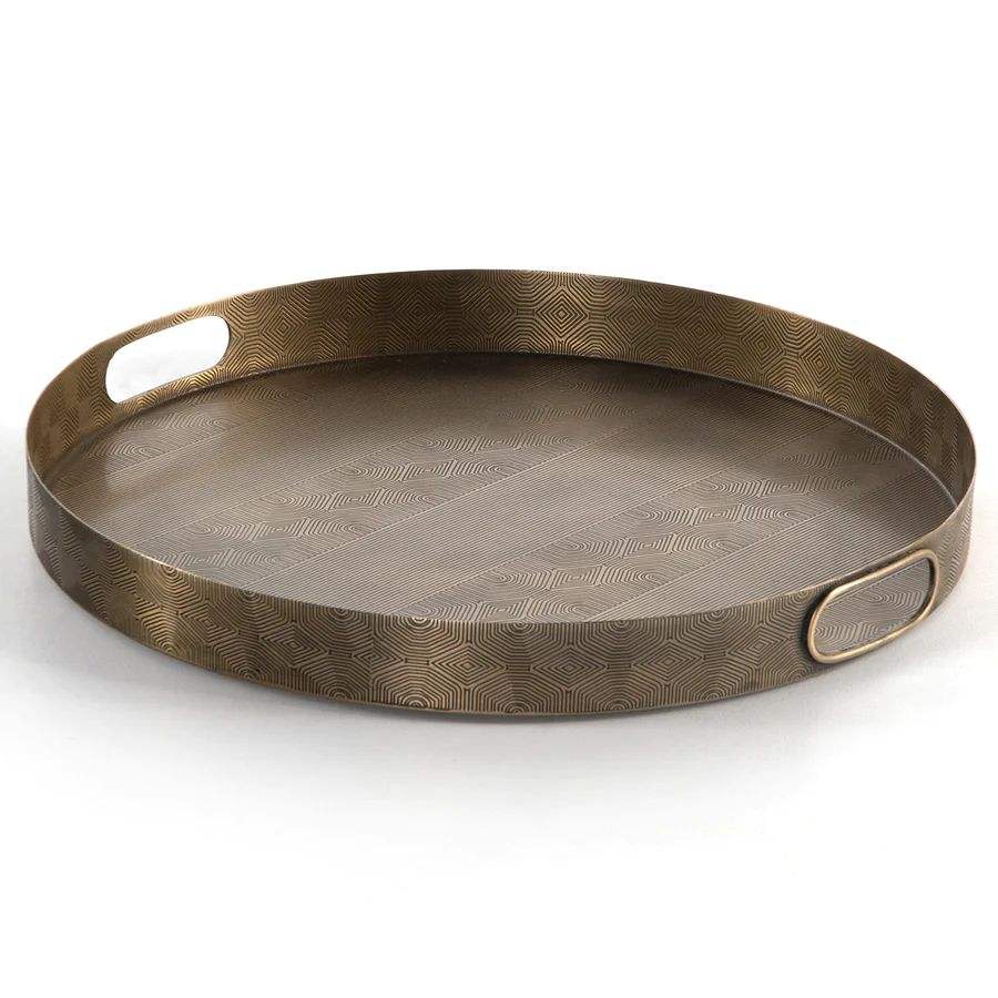 Plateau de service en laiton élégant, conçu pour une mise en scène de table sophistiquée, améliorant la présentation des aliments lors de fêtes et de cérémonies