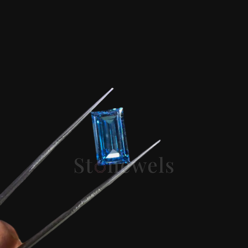 Stonewels Bleu Taille Baguette Synthétique de laboratoire Couleur fantaisie 1 carat HPHT CVD Certifié IGI pour la fabrication de bijoux