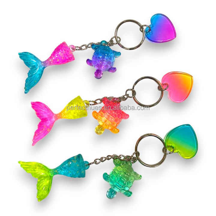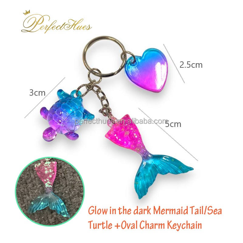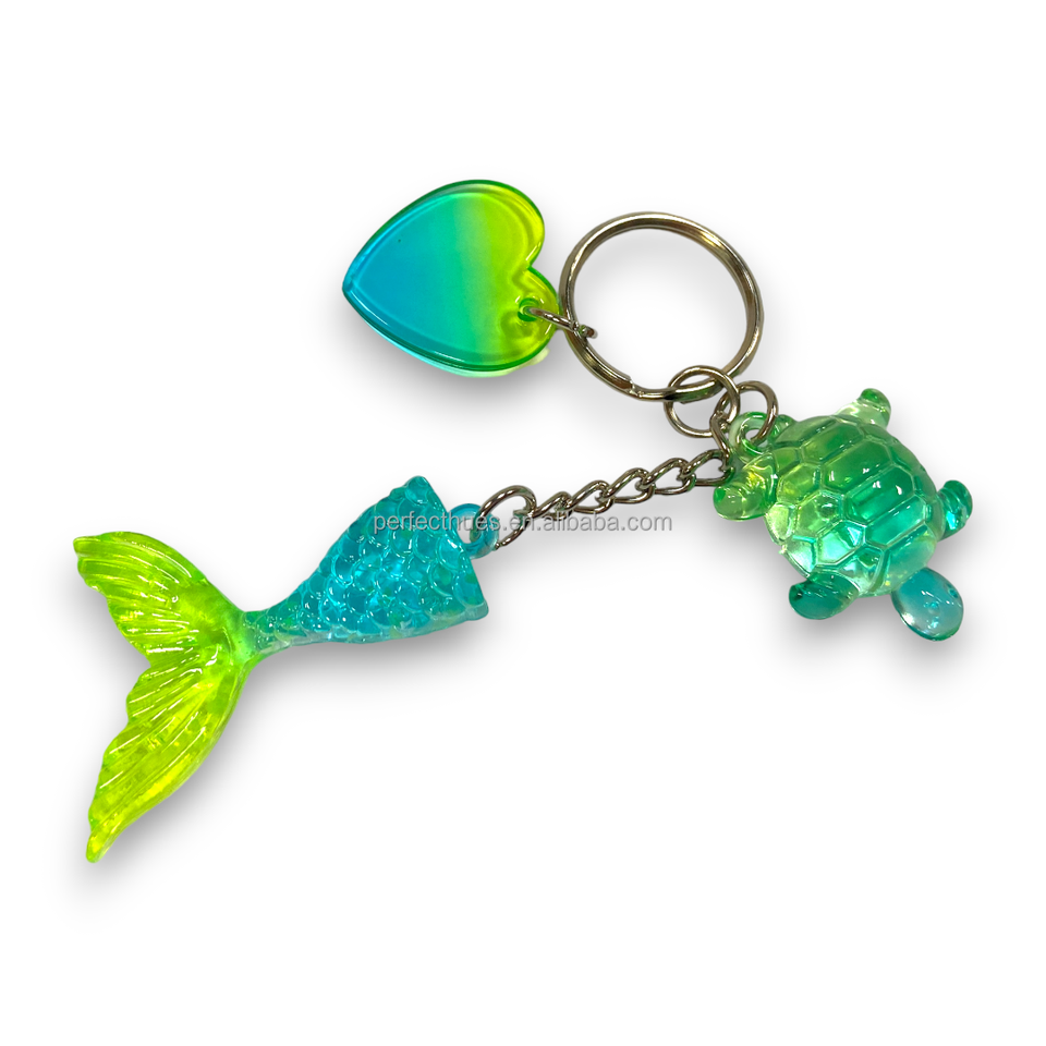 Fancy Colored Charms Souvenir Keychain Mermaid & Turtle UV Printed 3D Shape Durable Glowing in the Dark