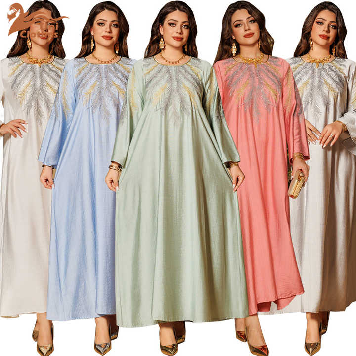 Fantaisie coloré 5 Styles broderie traditionnelle africaine cire imprimé musulman dubaï femmes grande taille vêtements pour caftan Abaya Robe