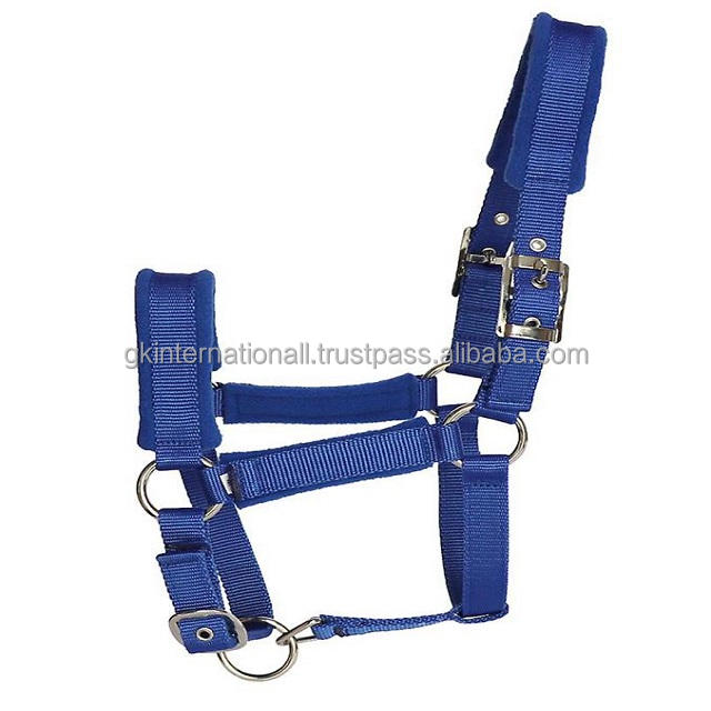 Sangle en nylon confortable de fantaisie licou de cheval en nylon bleu rembourré doux dans toutes les tailles personnalisées et de nombreuses couleurs avec matériel réglable