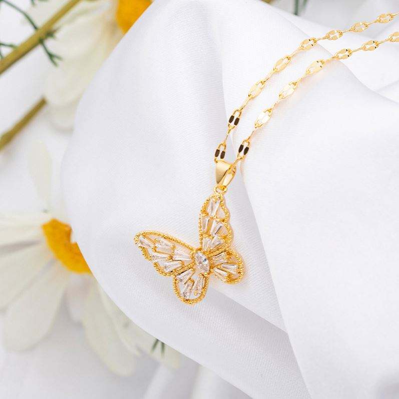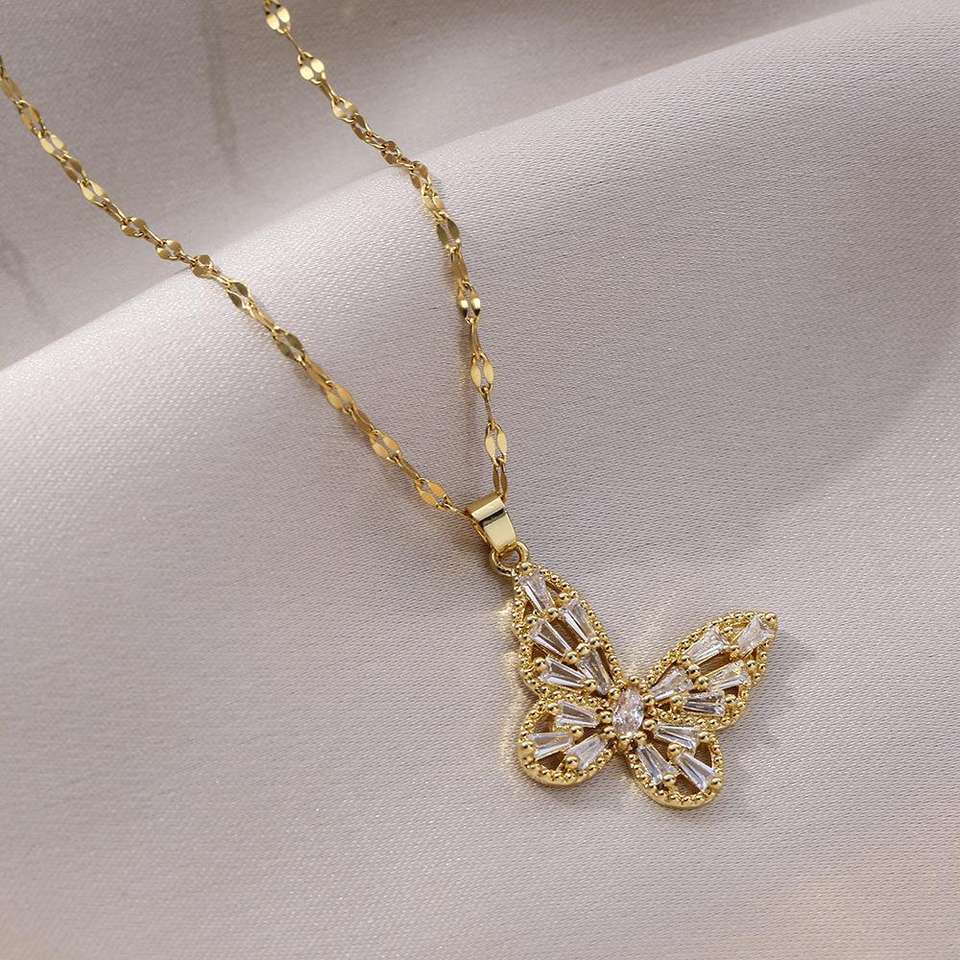Collier papillon en cristal fantaisie or 18 carats en acier inoxydable bijoux cadeau cubique Zircon papillon pendentif collier femmes