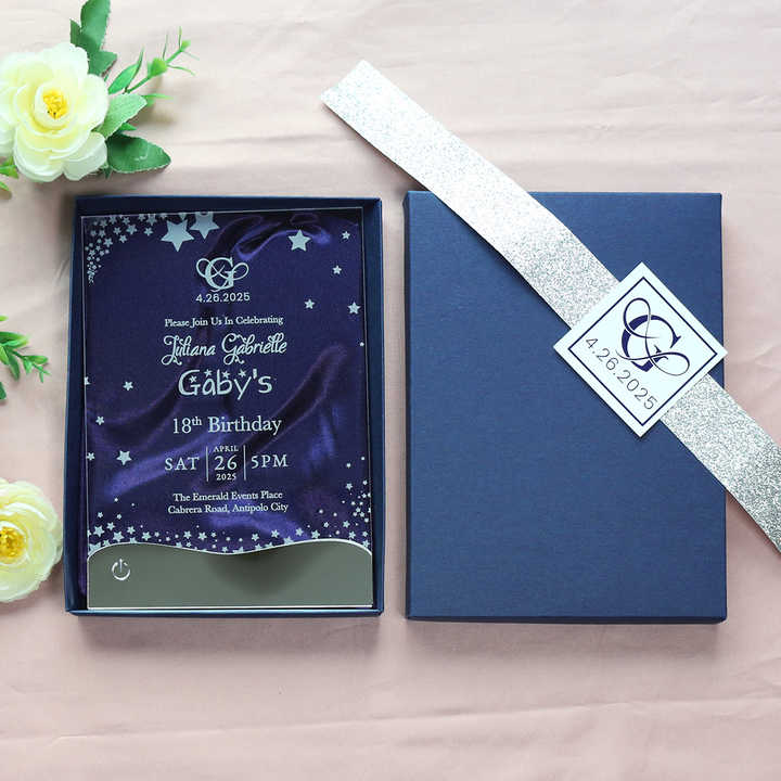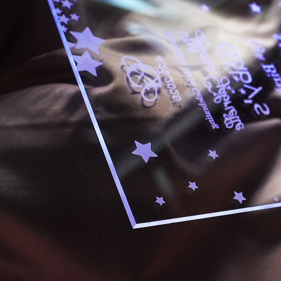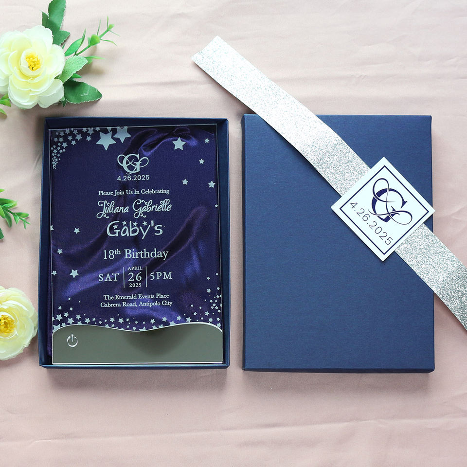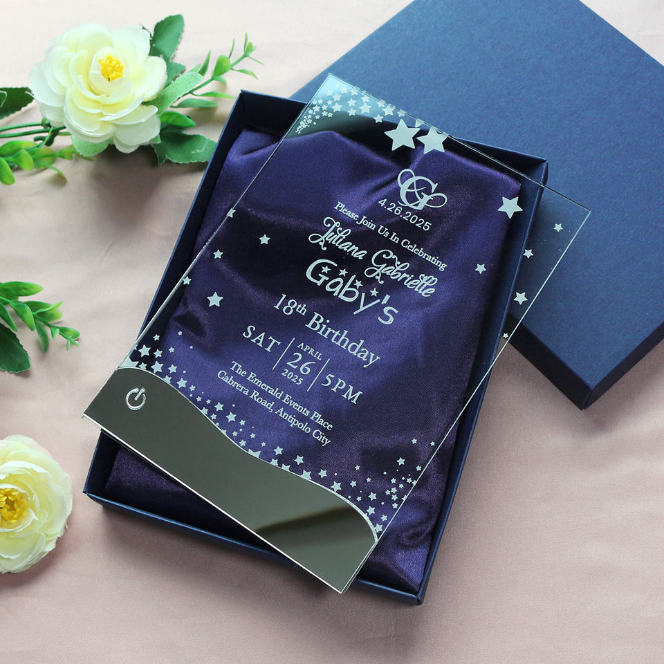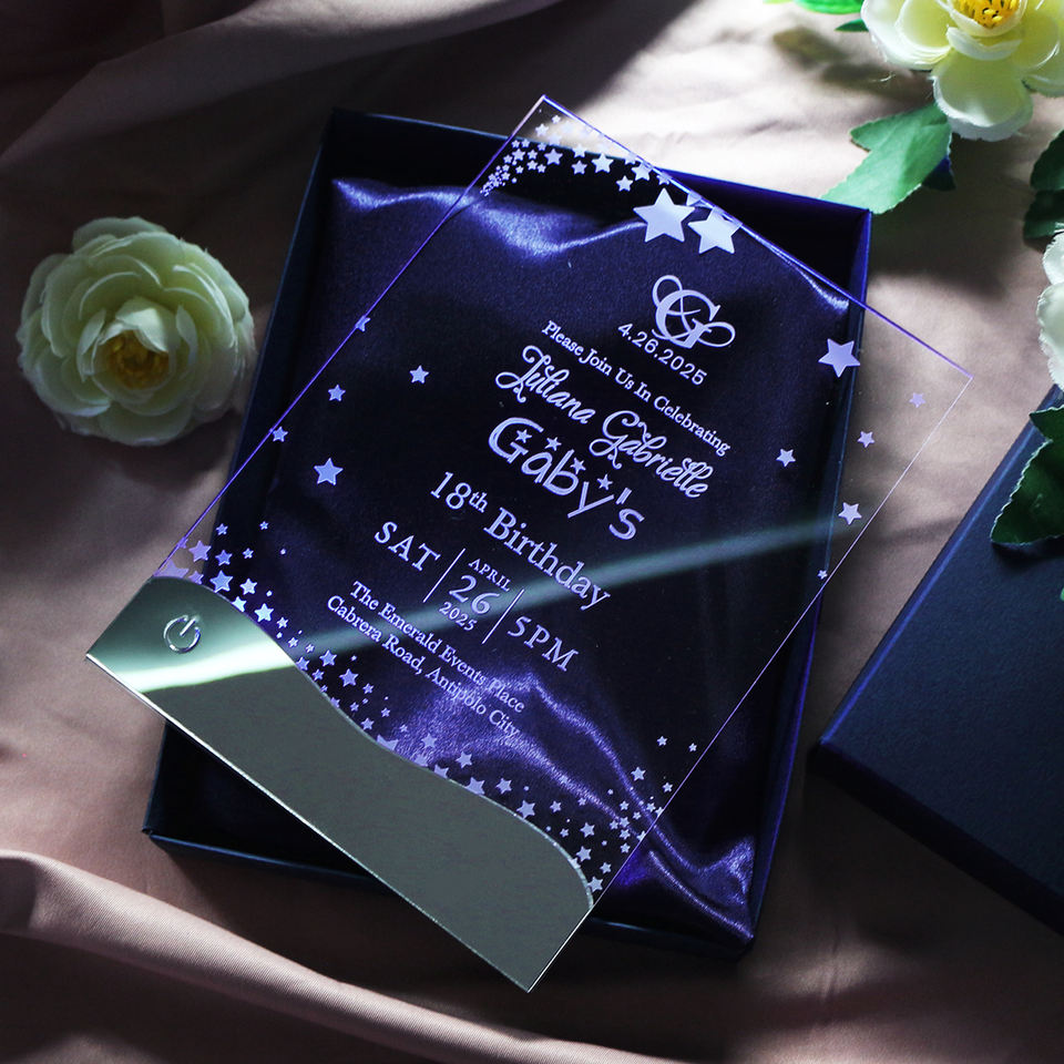 Invitation d'anniversaire personnalisée en acrylique transparent lumineux avec LED, invitation de mariage en acrylique avec boîte et bande décorative