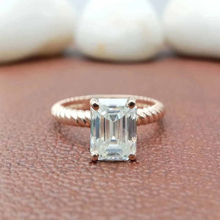 Bague de Fiançailles et de Mariage Solitaire Personnalisée Fantaisie Diamant Taille Émeraude Certifié GIA Argent 925 Or 14k 18k Cadeau Fêtes 100%
