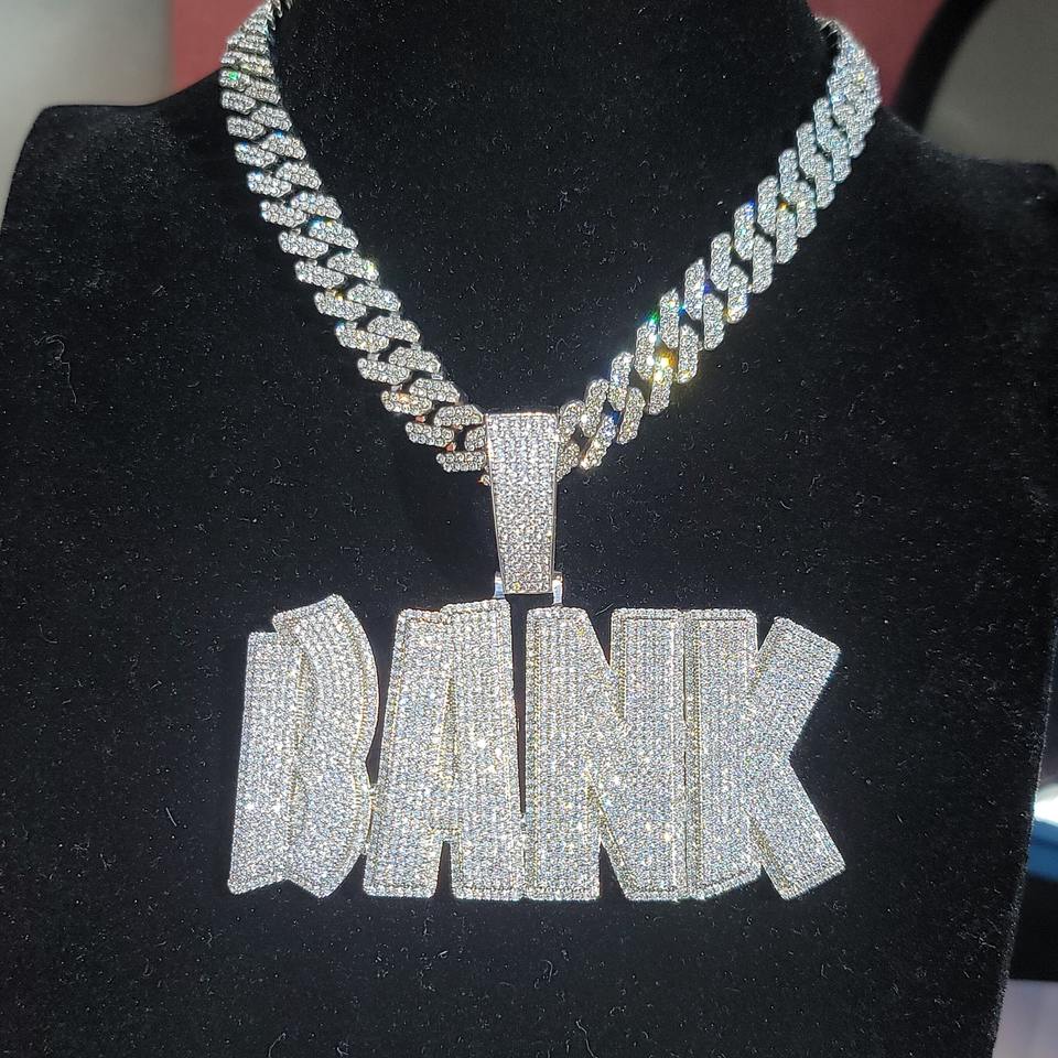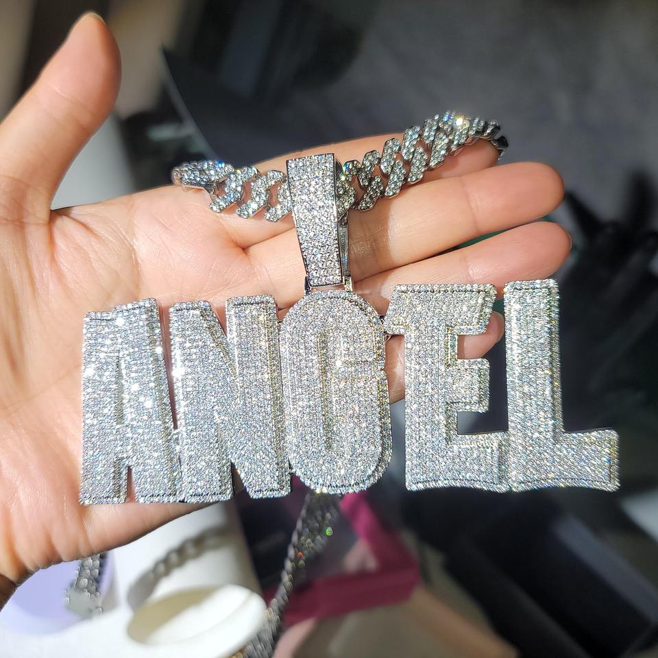 Fancy 3D Design Round Brilliant Cut Setting VVS Diamond Custom Name Pendant 14K White Gold Party Fine Jewelry