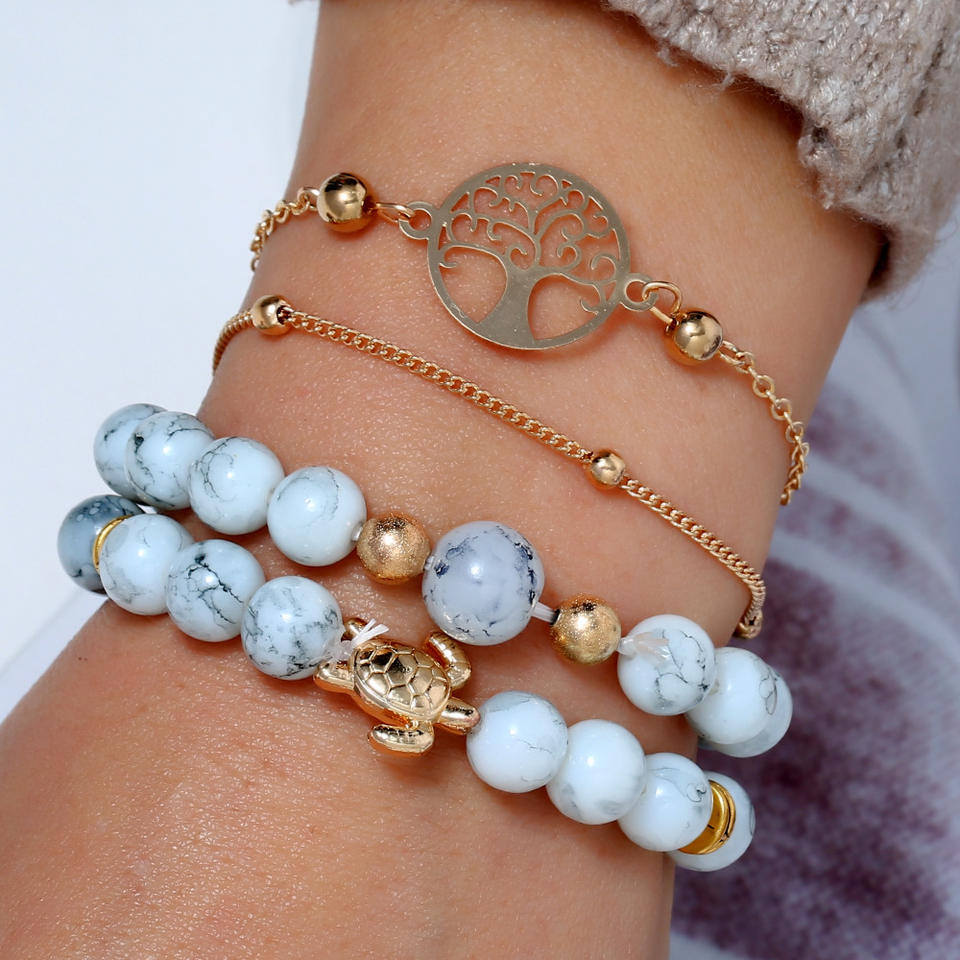 Fantaisie jour bohème naturel turquoise pierre perle Bracelet ensemble femmes luxe or Bracelet femme bracelets femme tendance
