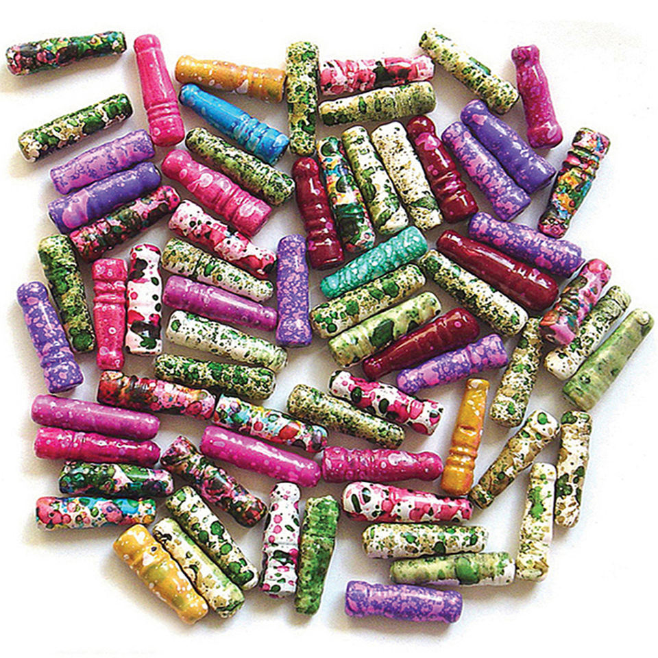 Mélange de perles de verre en forme de tuyau poli en marbre décoratif fantaisie pour la fabrication de bijoux et la décoration disponible au prix de gros